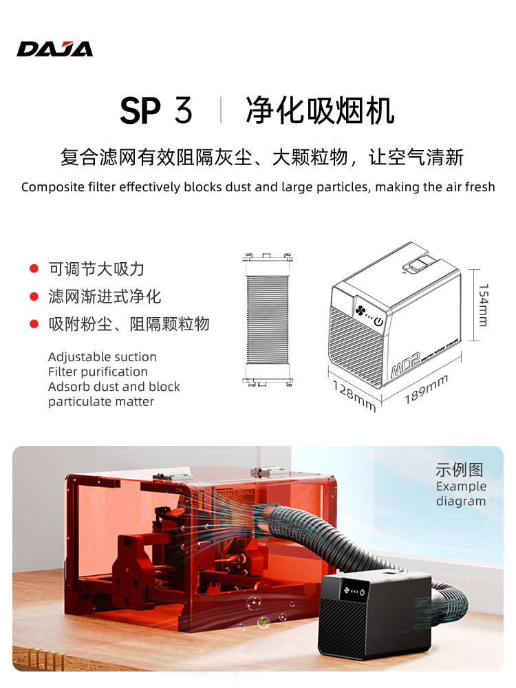 Лазерный гравер DAJA с функцией очистки воздуха подходит для станков для резки и гравировки по дереву, бамбуку, акрилу, а также для станков с функцией очистки воздуха при резке.