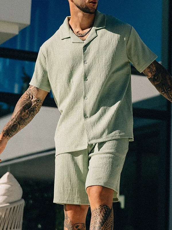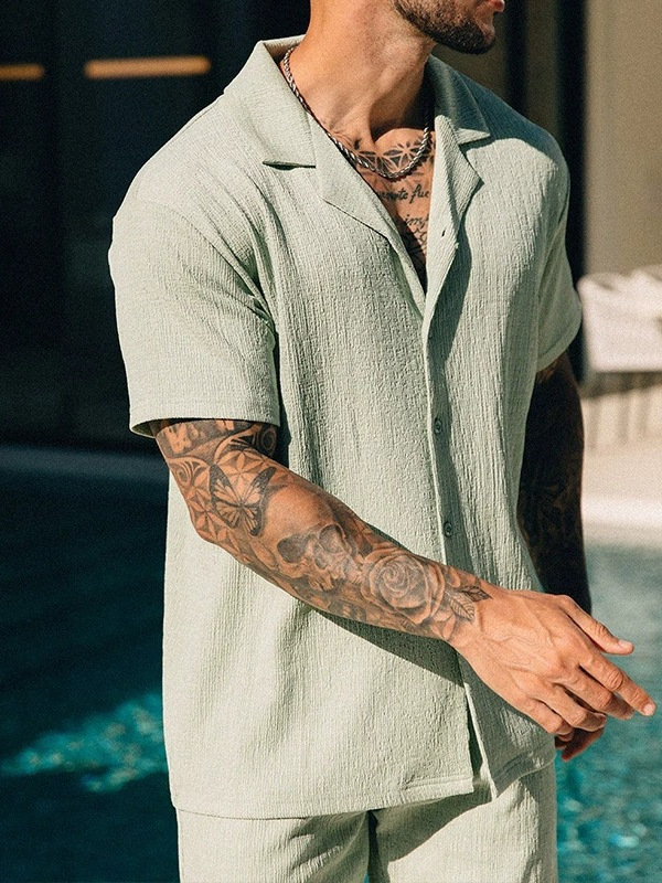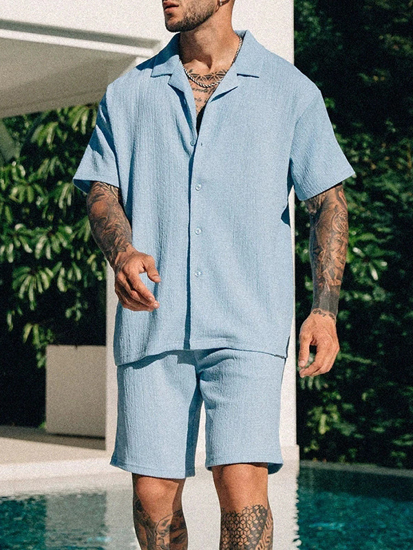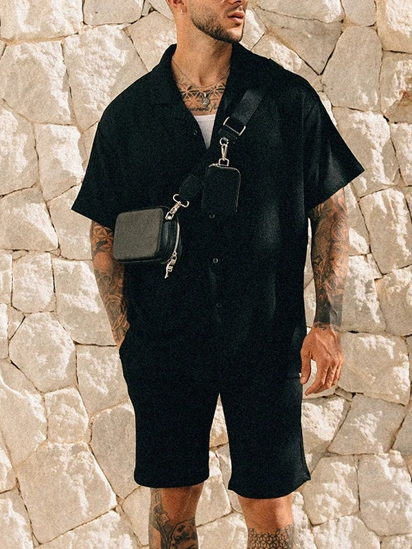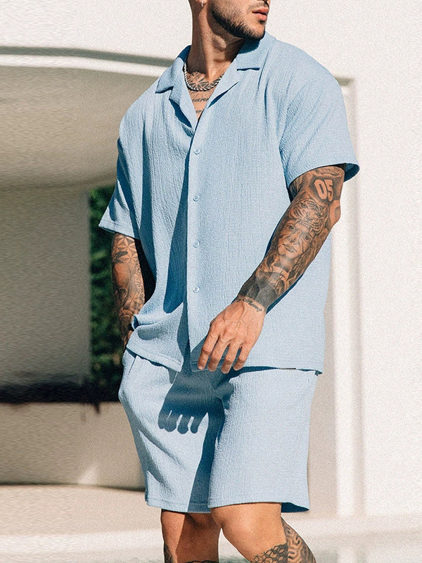 Трансграничная европейская и американская мужская новая независимая станция поставки летом повседневная рубашка с отворотом шорты с короткими рукавами мужской костюм
