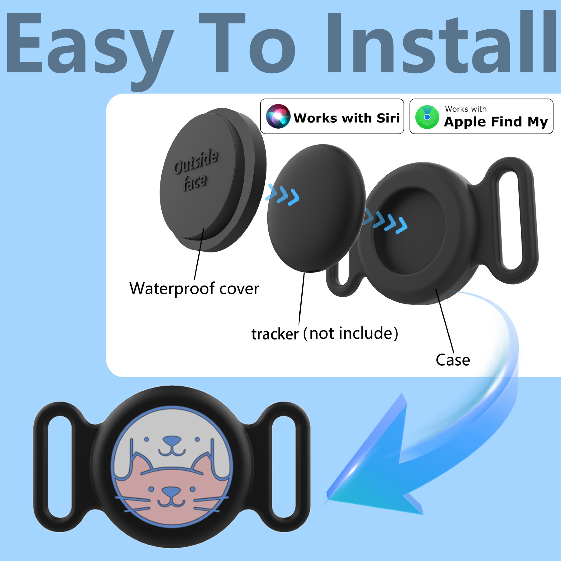 Применимо для защиты от потери корпуса от Apple Airtag для кошек и собак для домашних животных ошейник трекер водонепроницаемый силиконовый чехол