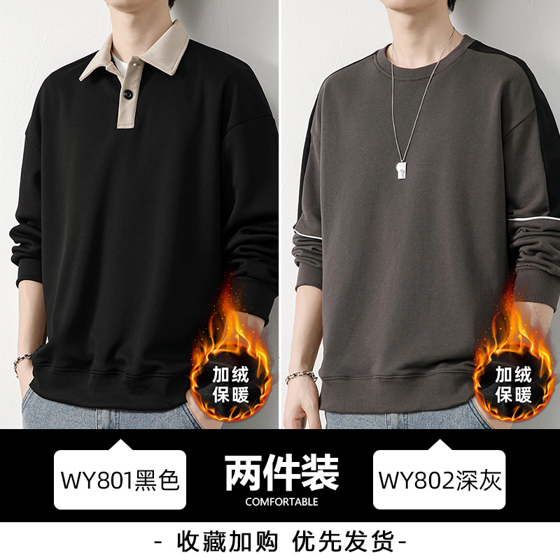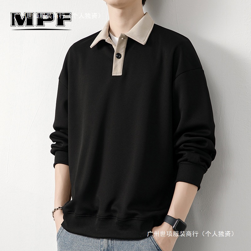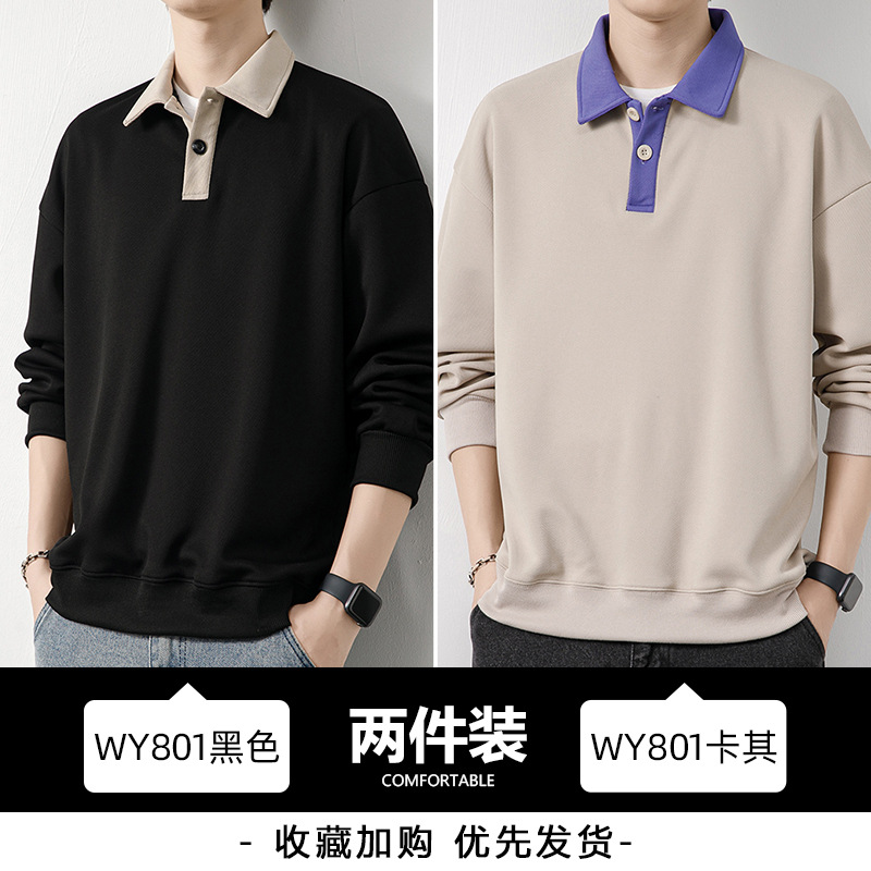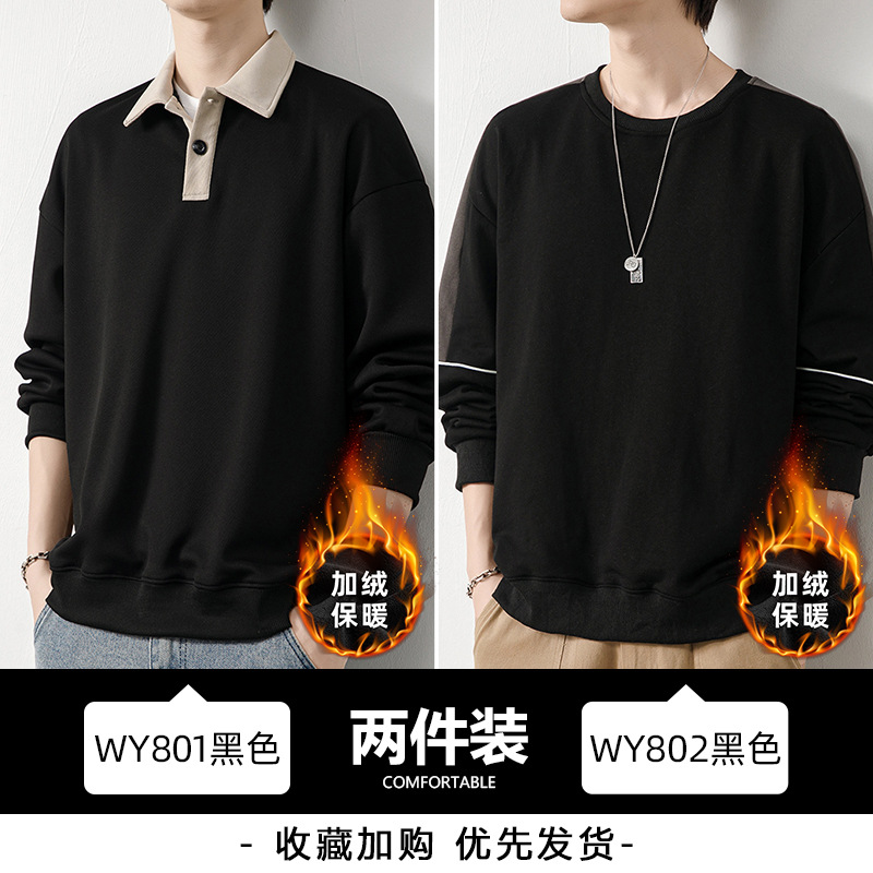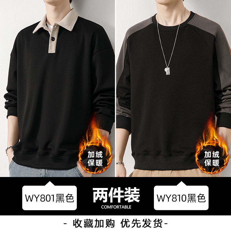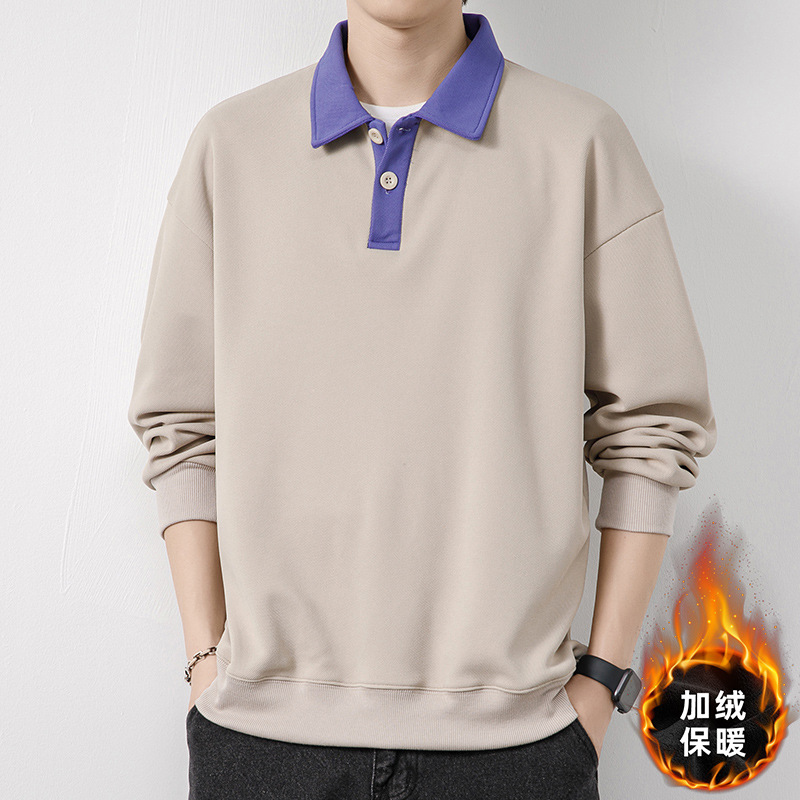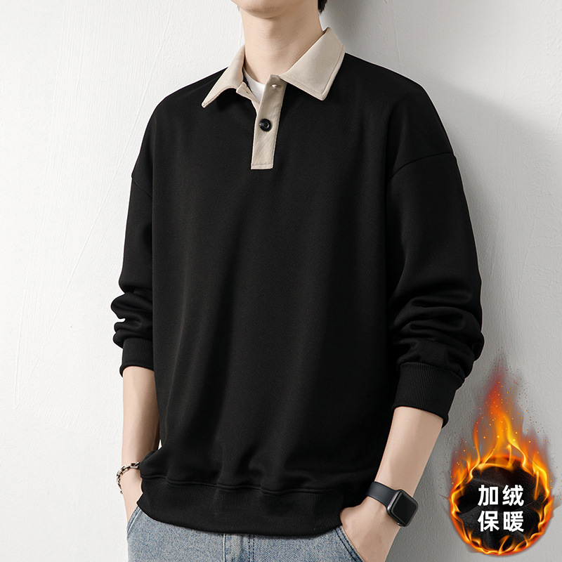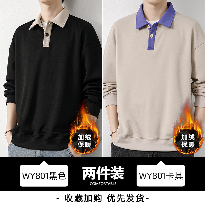 Рубашка поло с длинными рукавами футболка мужская весна и осень зима бархатный американский свитер 2025 новый нижний рубашка весенний топ T