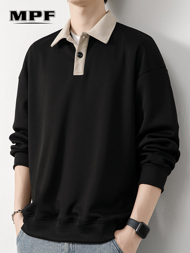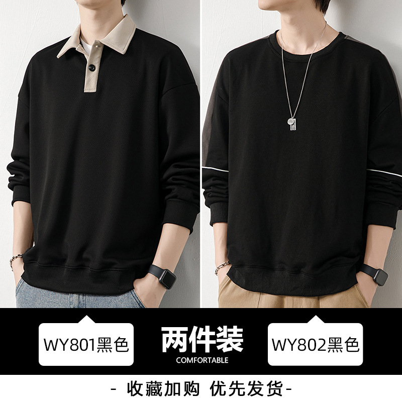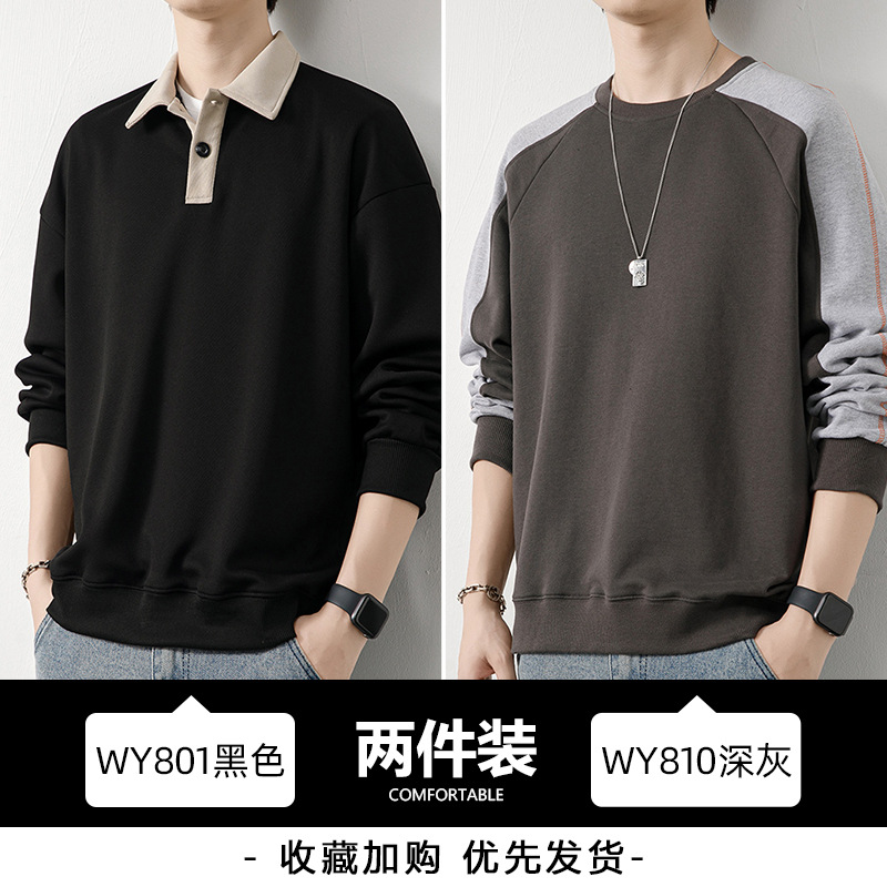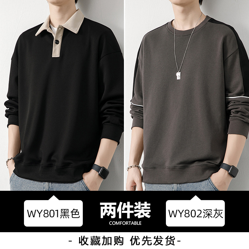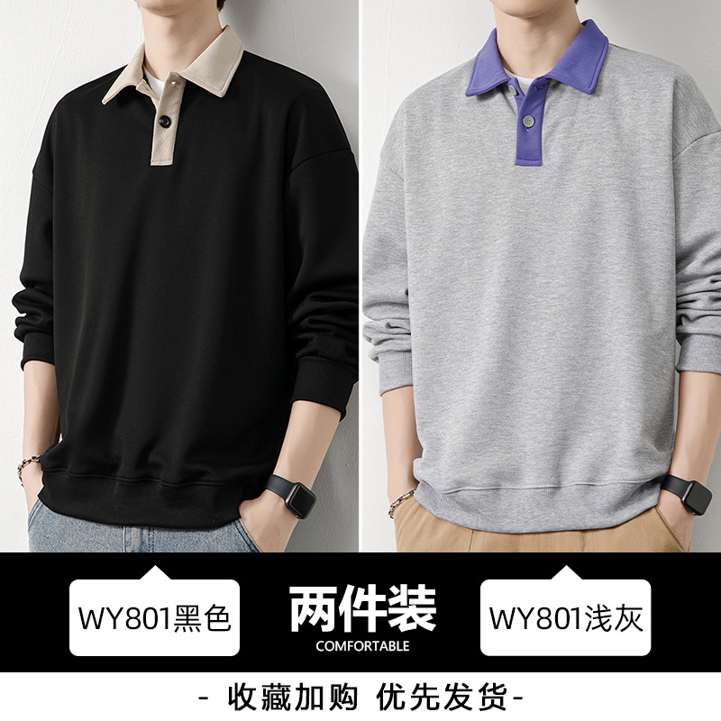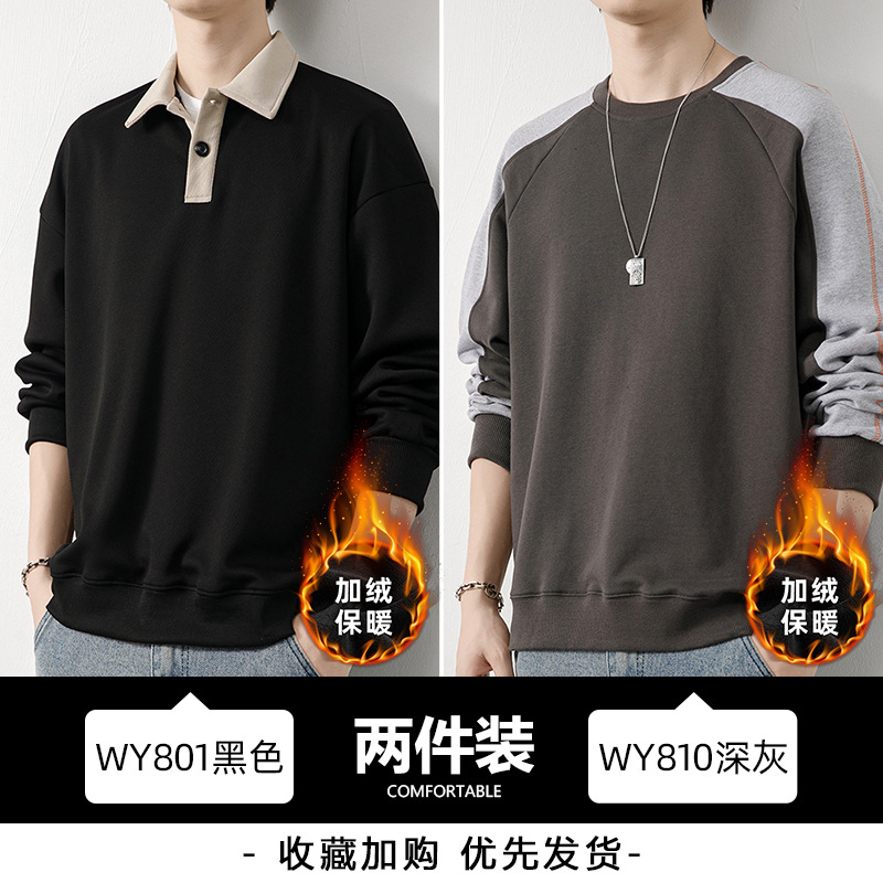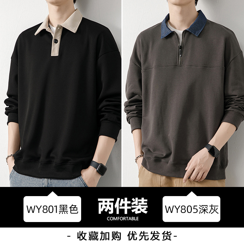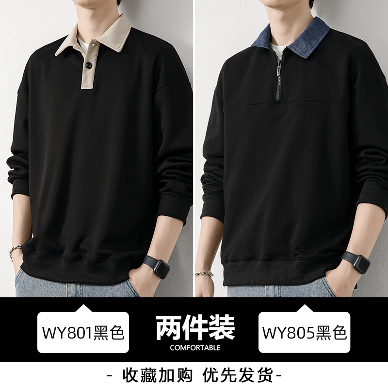 Рубашка поло с длинными рукавами футболка мужская весна и осень зима бархатный американский свитер 2025 новый нижний рубашка весенний топ T