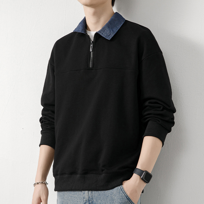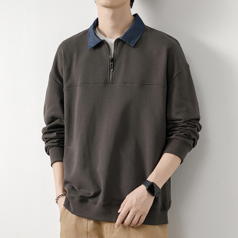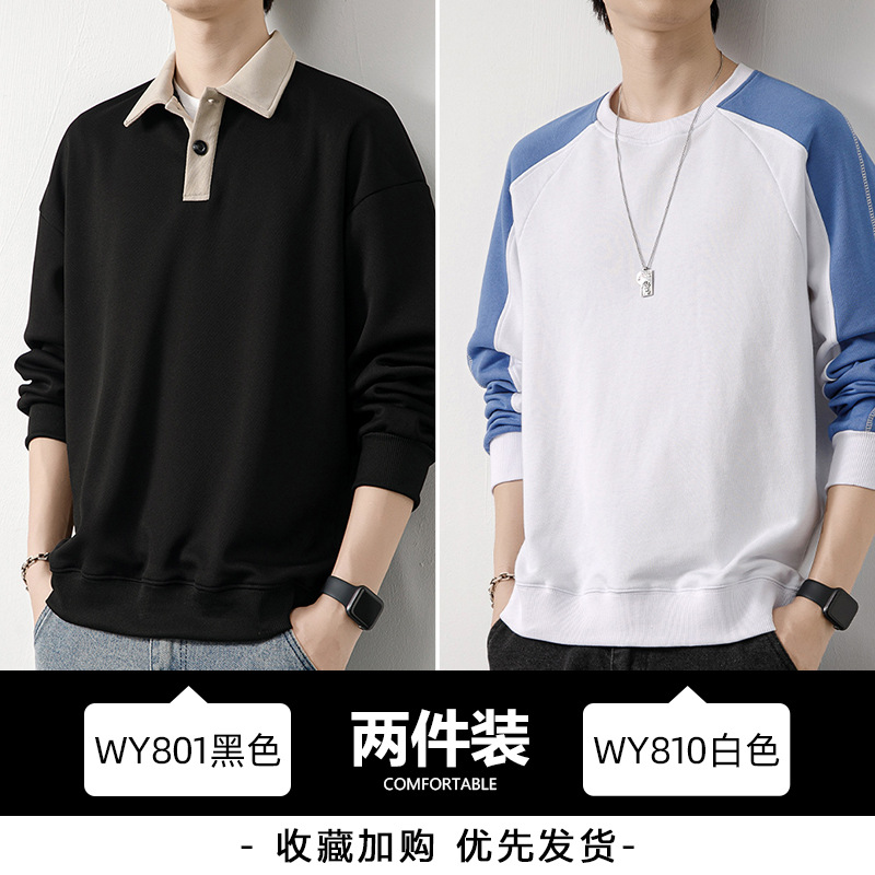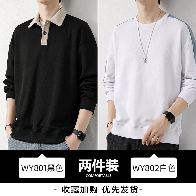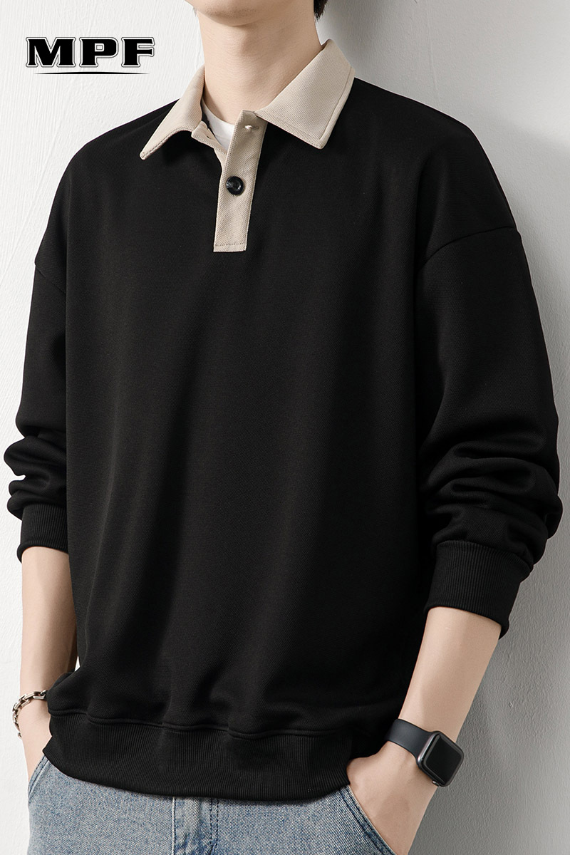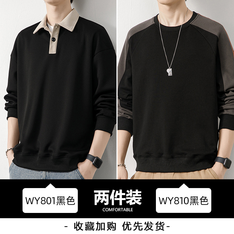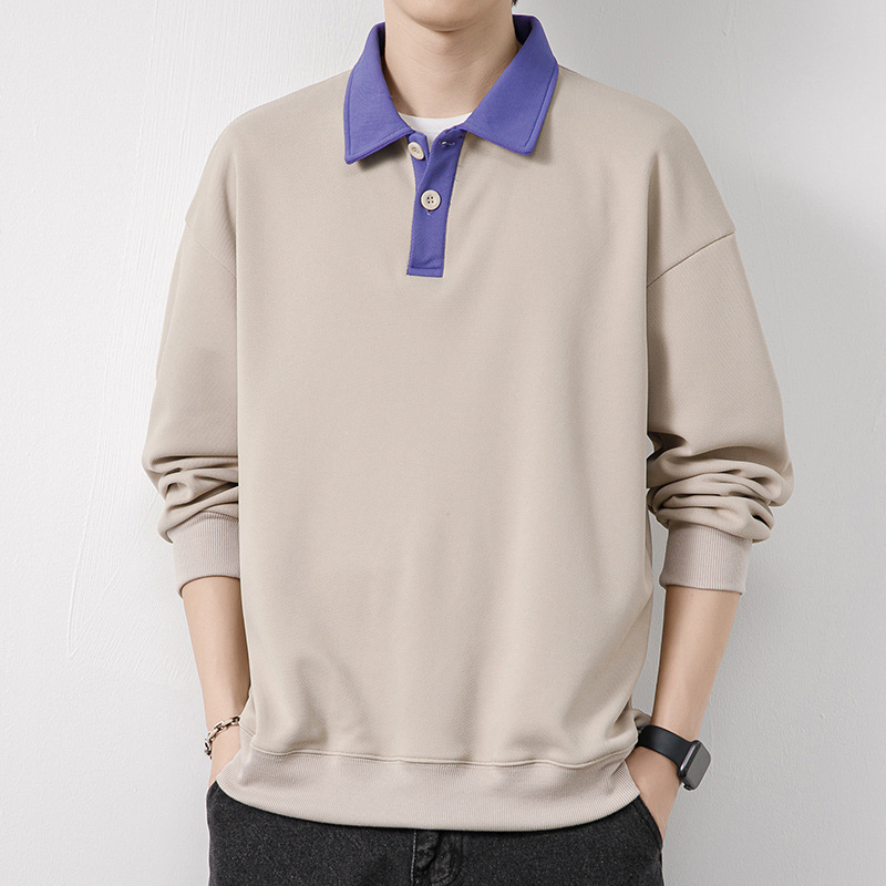 Рубашка поло с длинными рукавами футболка мужская весна и осень зима бархатный американский свитер 2025 новый нижний рубашка весенний топ T