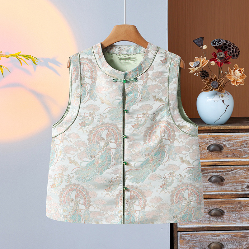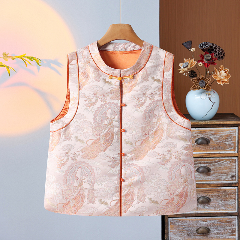 2025 национальный стиль китайский жаккардовый парча весна Дуньхуан ретро жилет с пряжкой новый жилетка