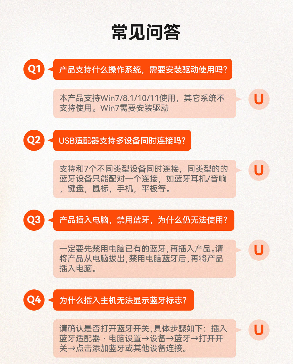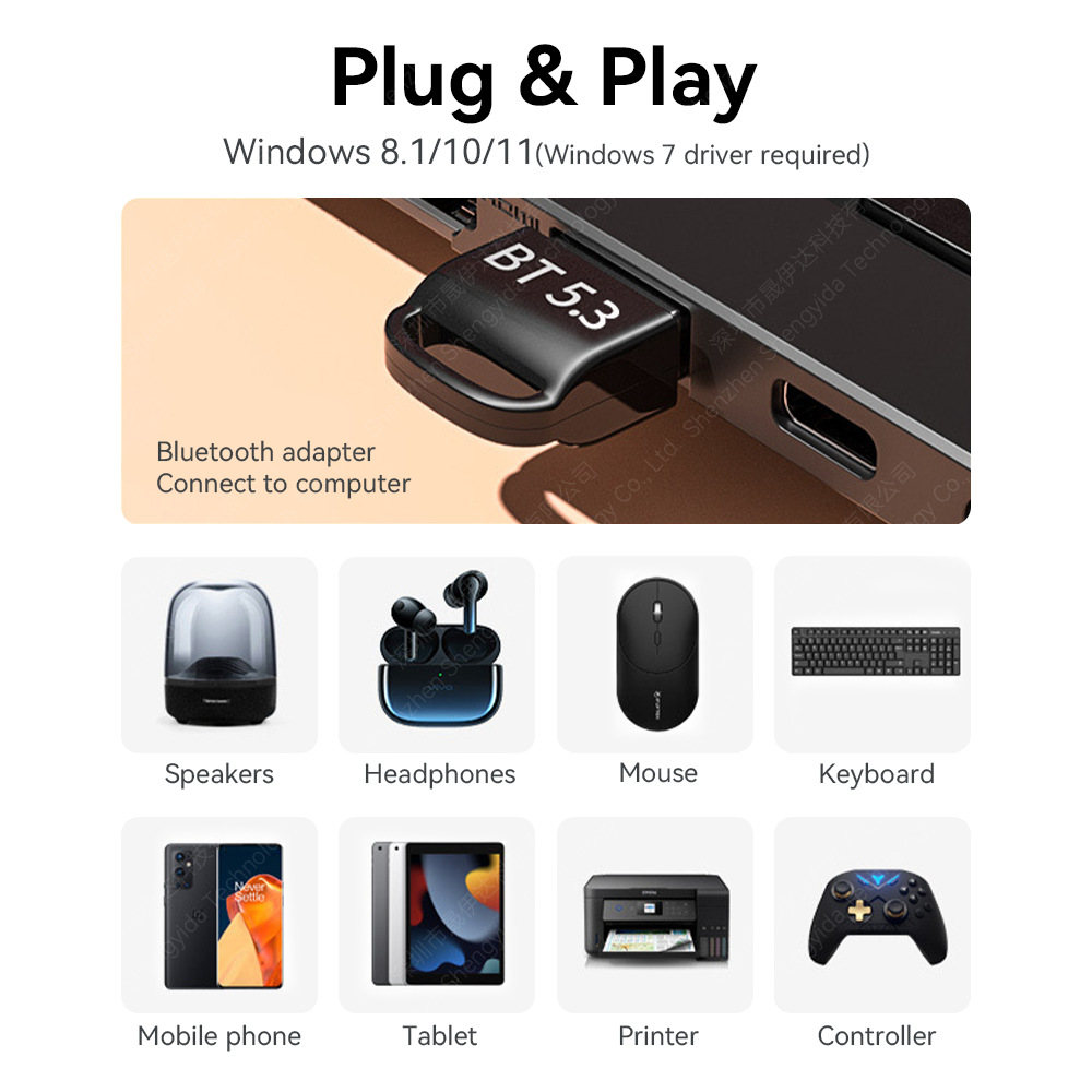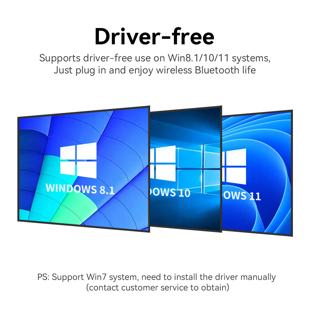 The Bluetooth adapter is developed for Windows systems only and does not support other systems. No driver installation is required under Windows 11/10/8.1(Win 7 required).