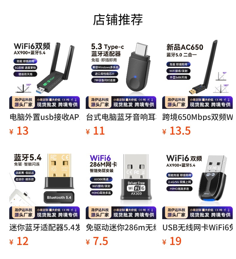 台式电脑蓝牙键盘鼠标发射器接收器免驱动USB蓝牙5.3适配器