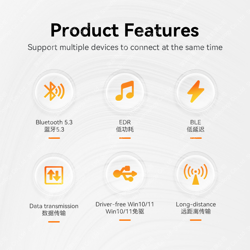 This bluetooth adapter for pc uses the latest upgraded Bluetooth 5.3 BR+EDR technology, greatly improves the stability of the connection data transfer speed, reduces the possibility of signal interruption and power consumption.