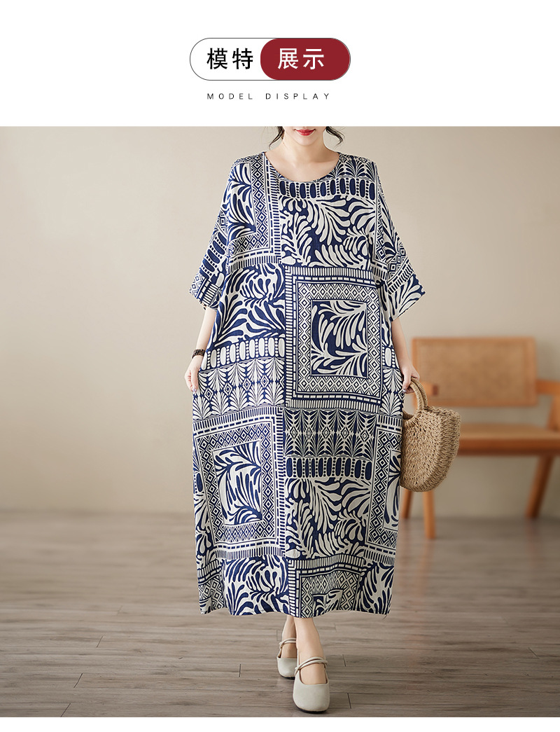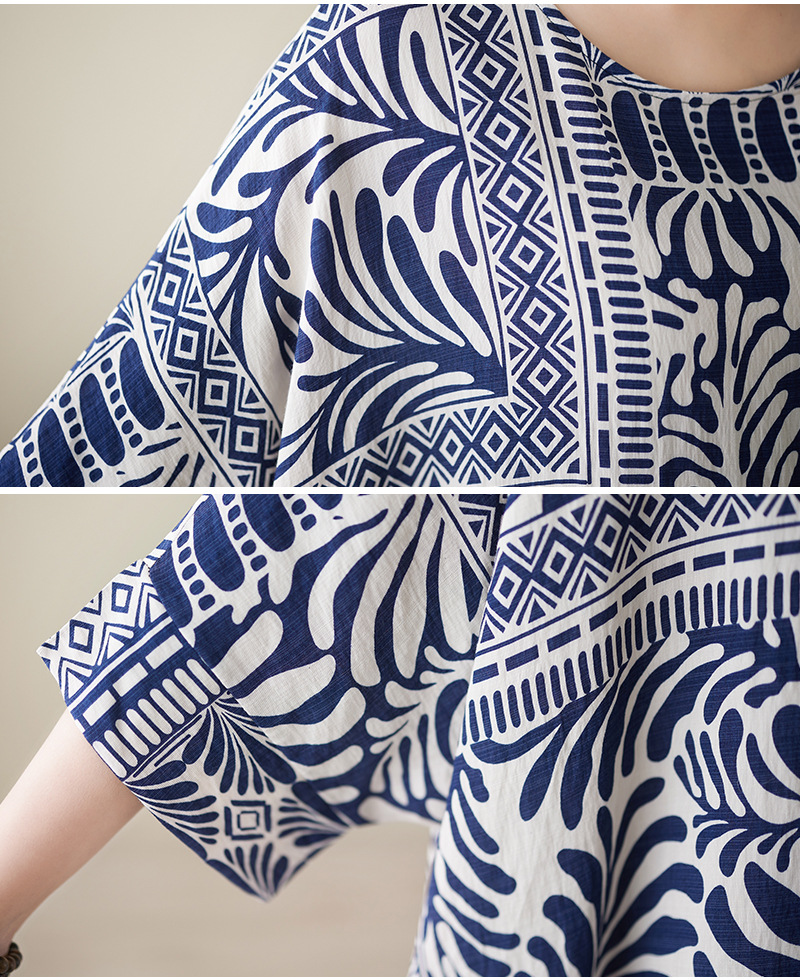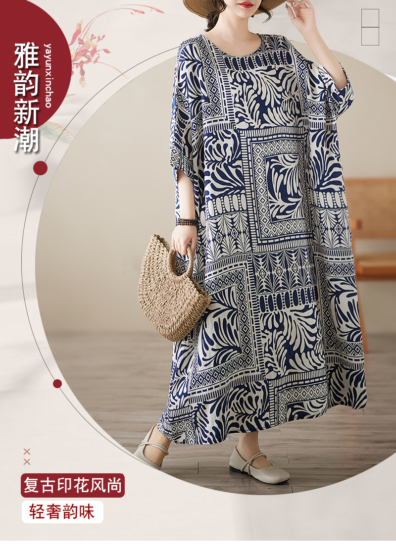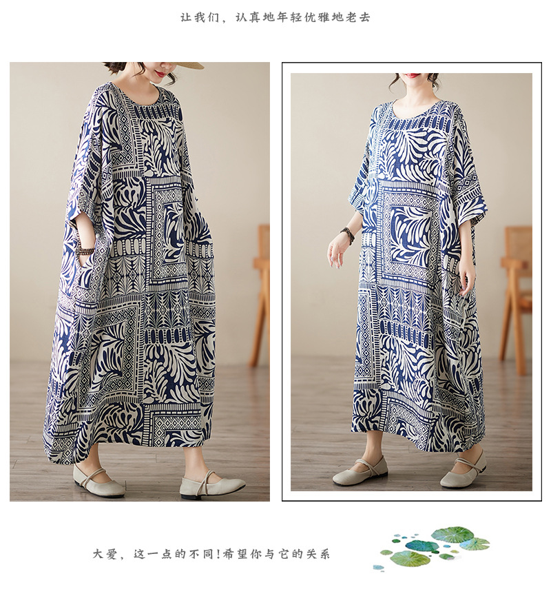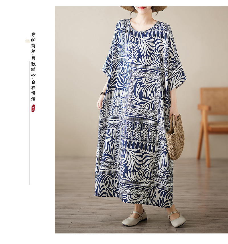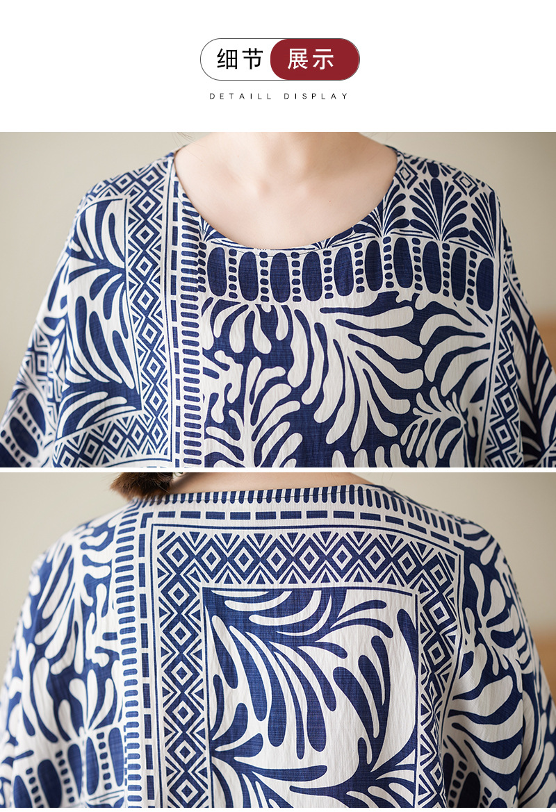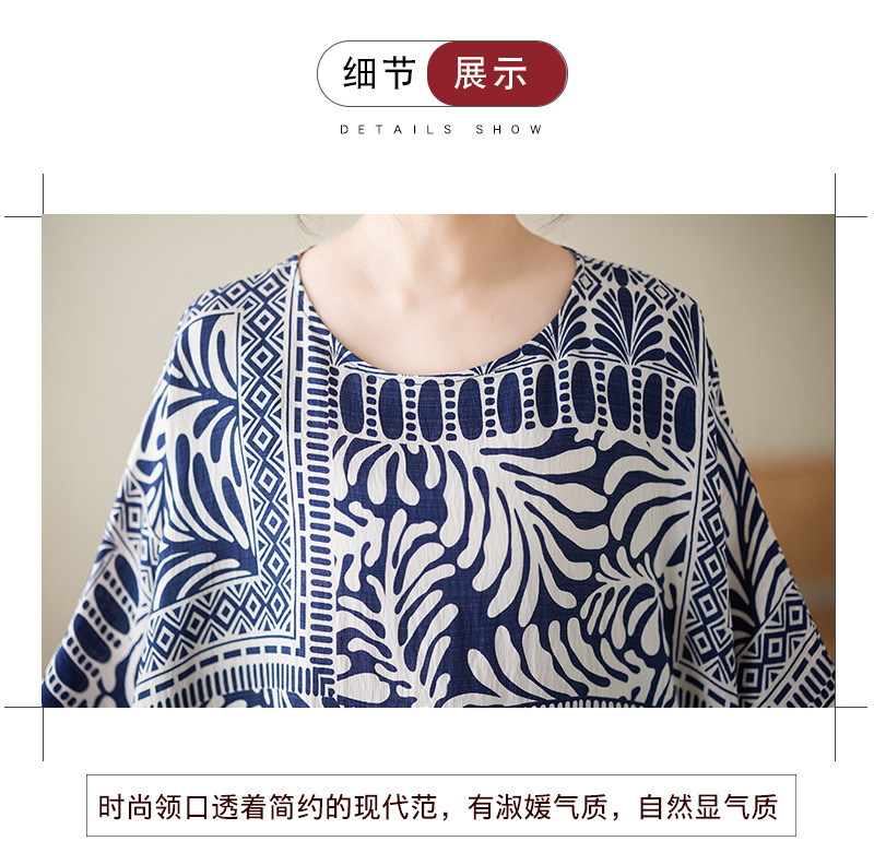 2025 толстая MM большой размер женская литература ретро с круглым вырезом с короткими рукавами свободная большая хлопчатобумажная льняная одежда женская 5623 #