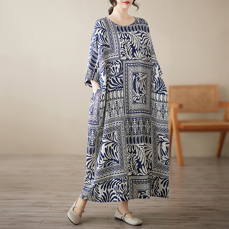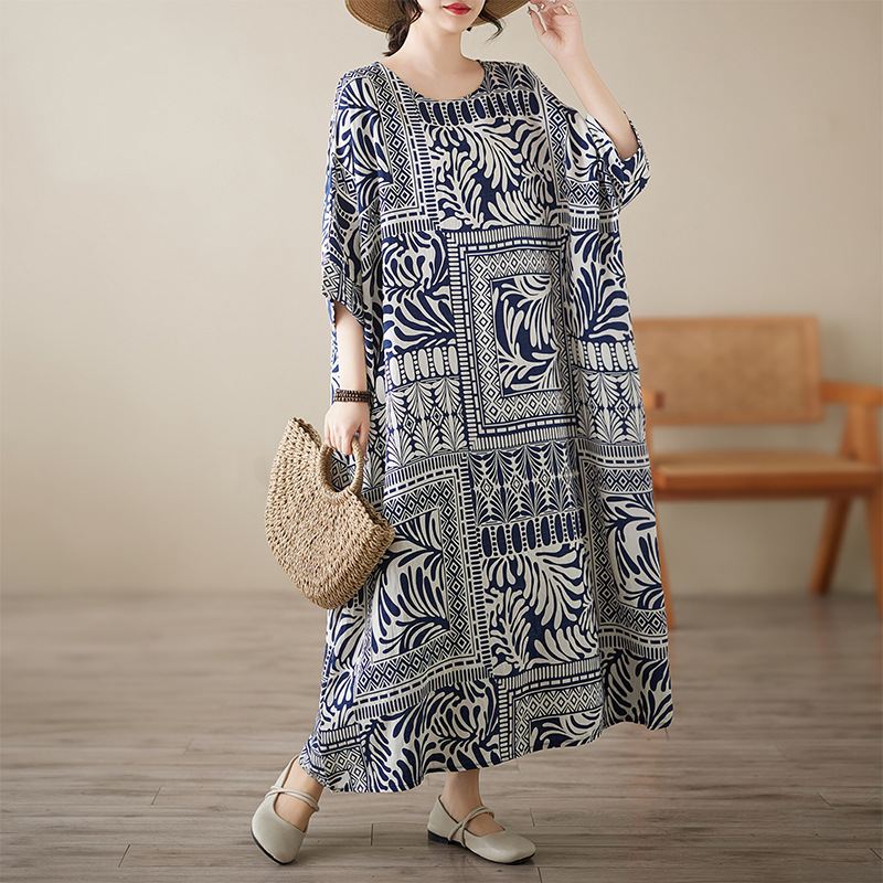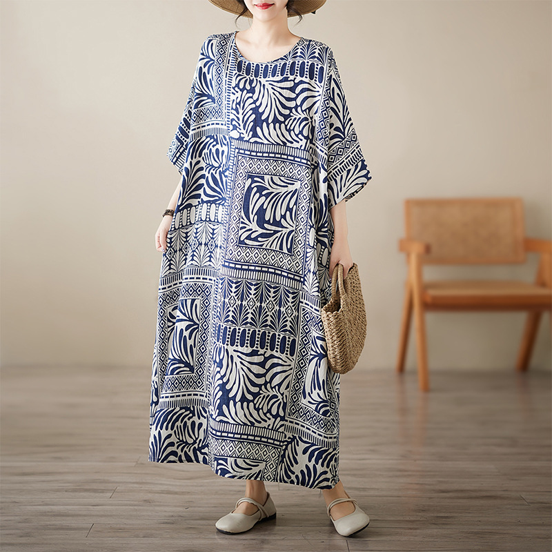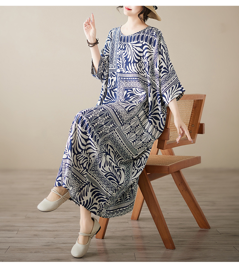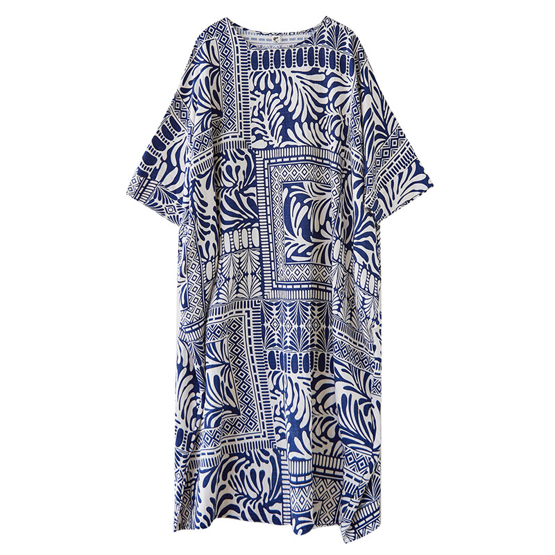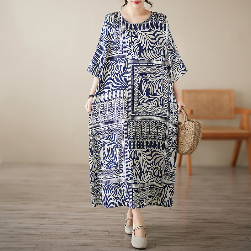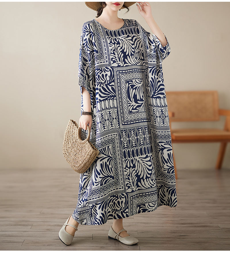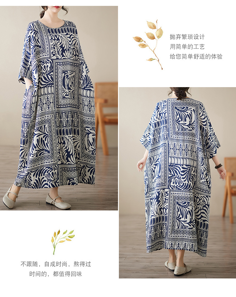 2025 толстая MM большой размер женская литература ретро с круглым вырезом с короткими рукавами свободная большая хлопчатобумажная льняная одежда женская 5623 #