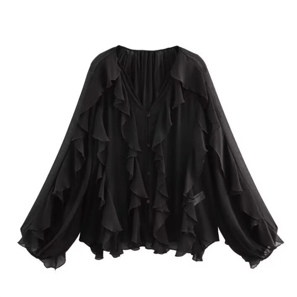 Внешняя торговля 2025 Женская весна новая мода бант шнуровка декоративная французская фонарь рукава рубашка с длинными рукавами