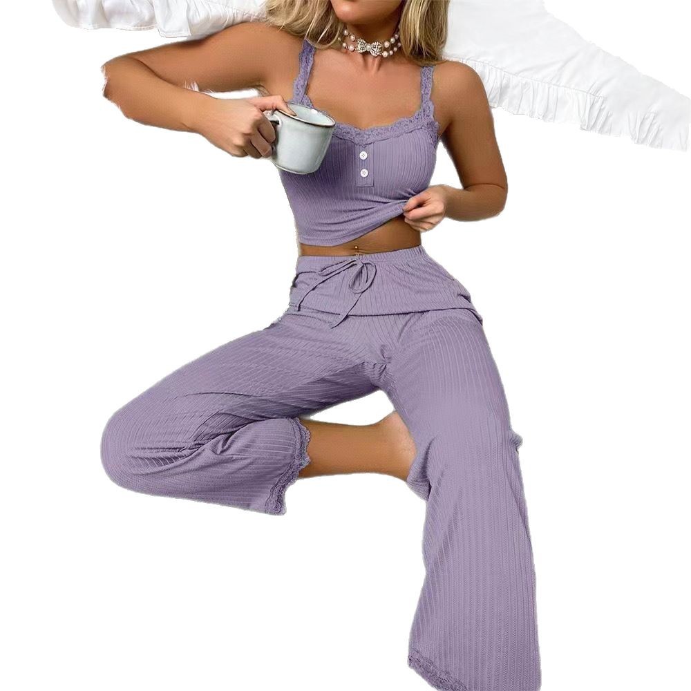 Новая европейская и американская внешняя торговля женская одежда с подтяжками брюки трансграничная сексуальная без рукавов кружевная пижама для внешней торговли оптом
