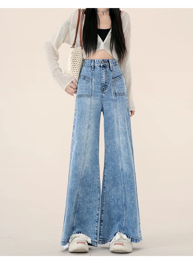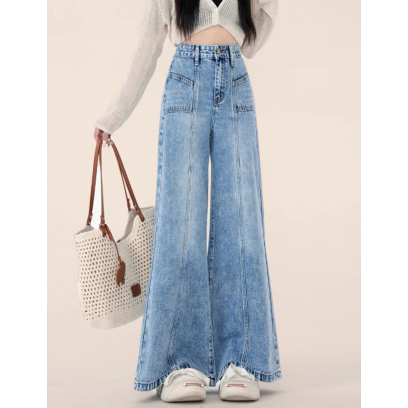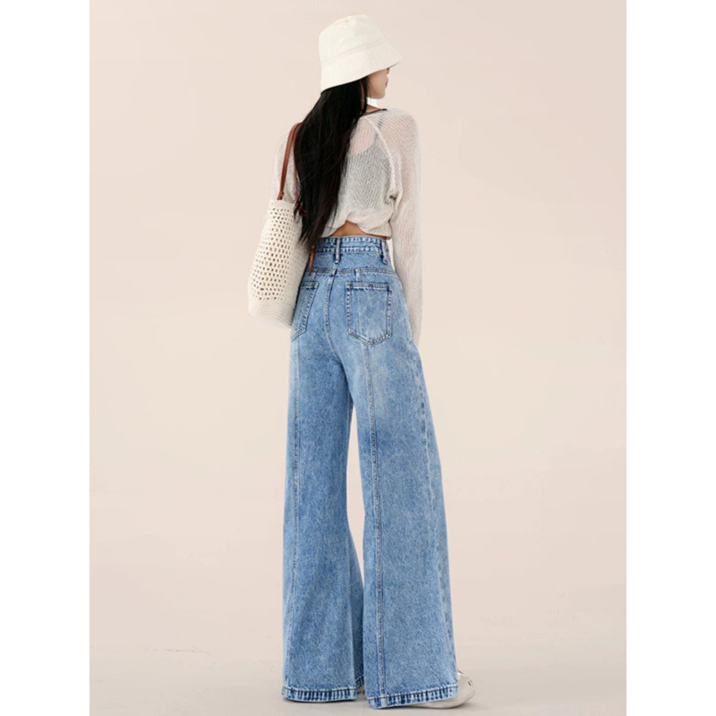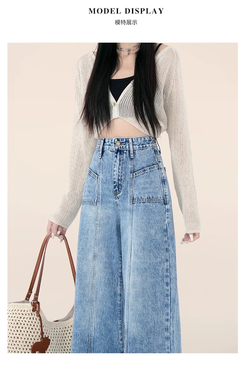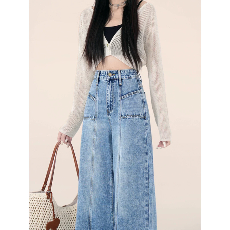 Светло-голубой сшитый срезанный джинсы женский синий прямой трубочки для стирки свободных широких ног микро-брюки