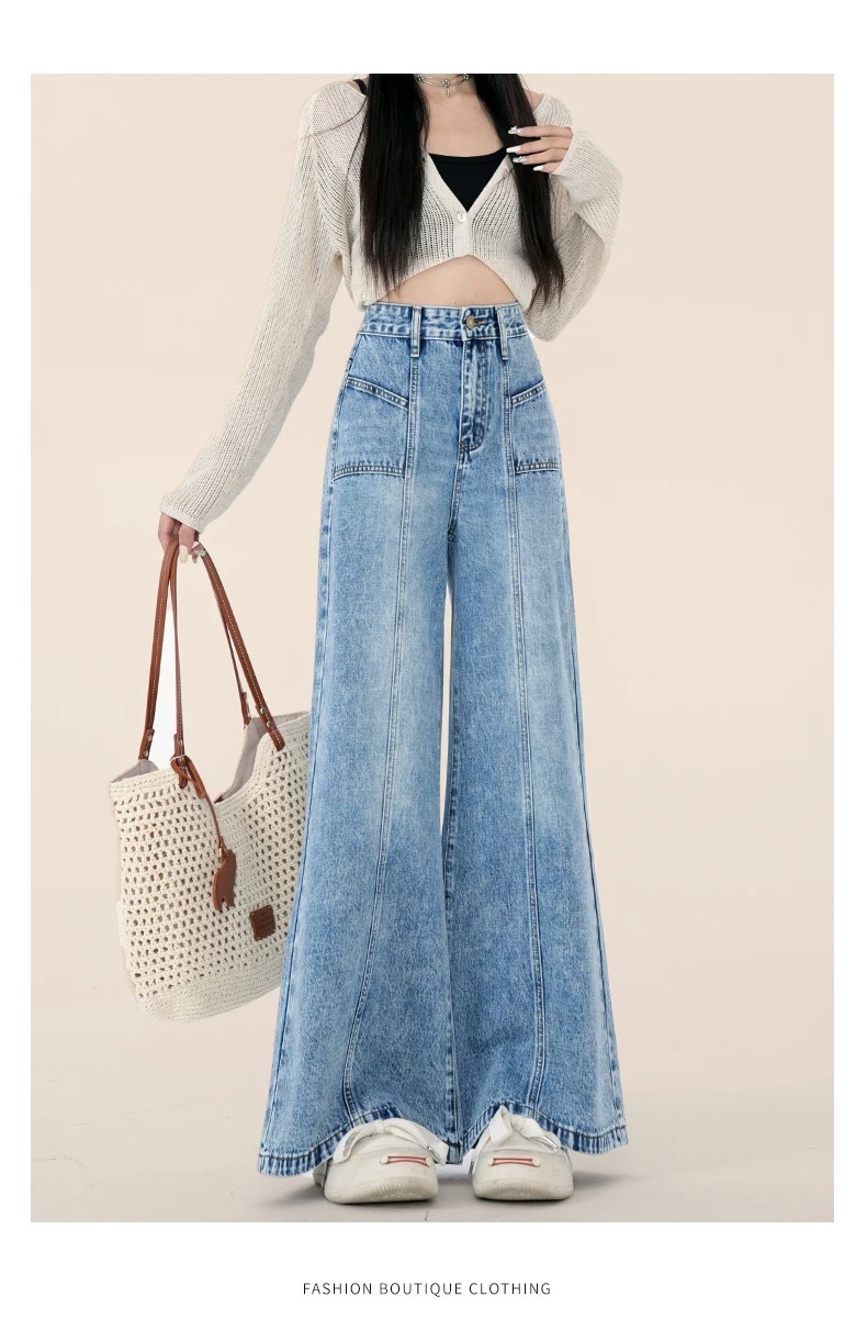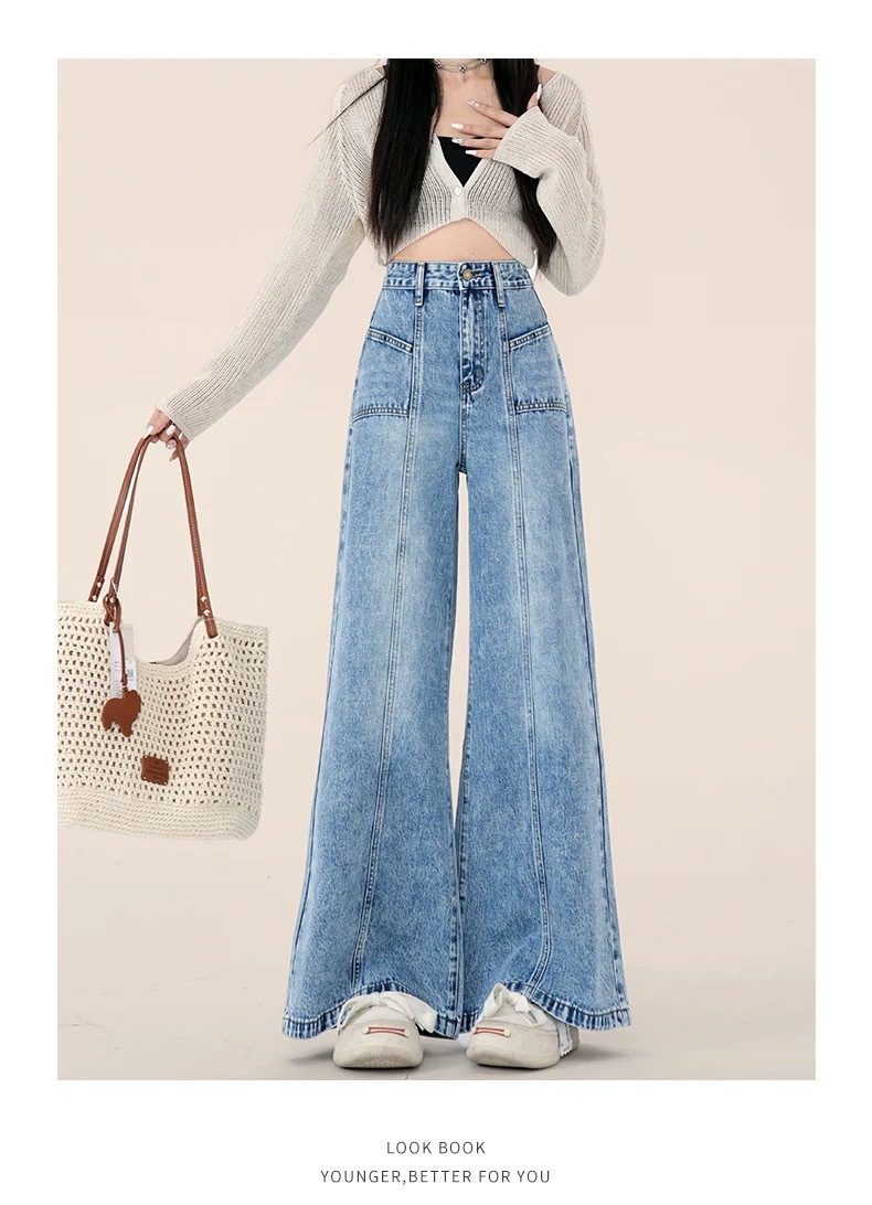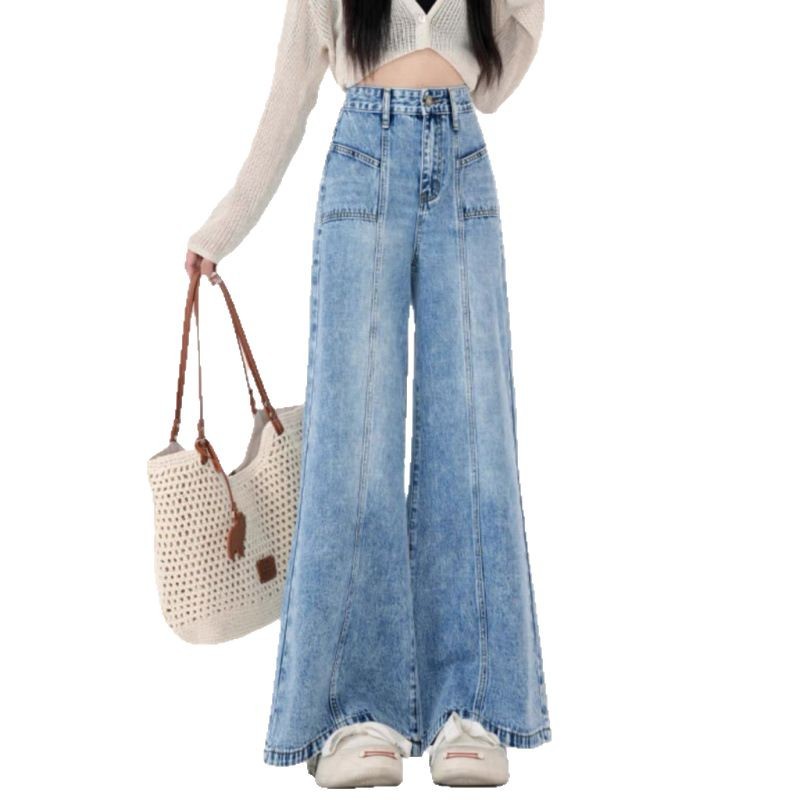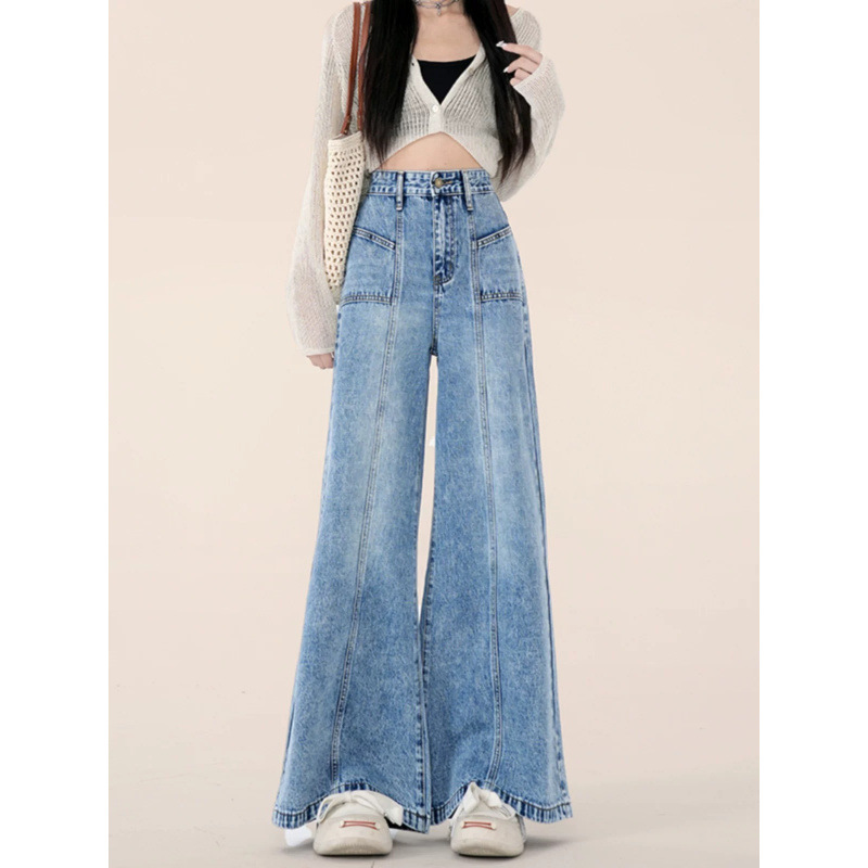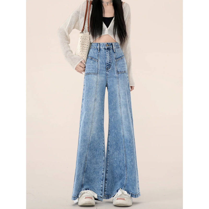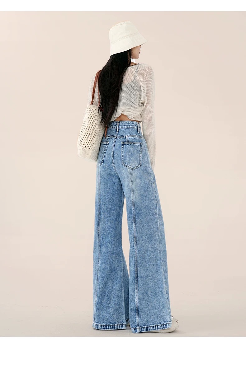 Светло-голубой сшитый срезанный джинсы женский синий прямой трубочки для стирки свободных широких ног микро-брюки