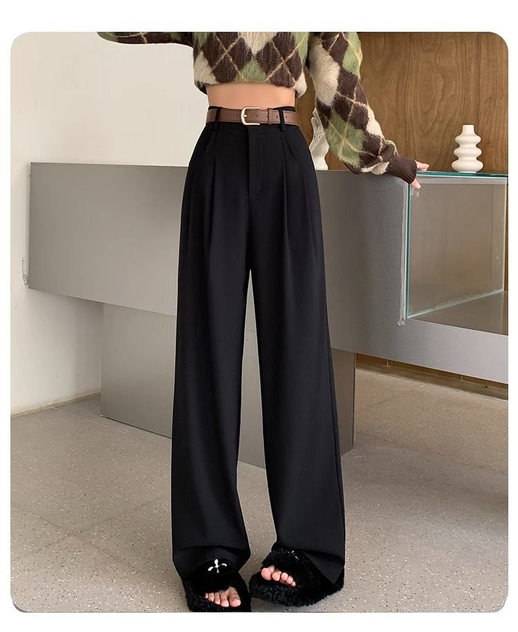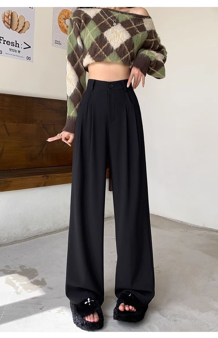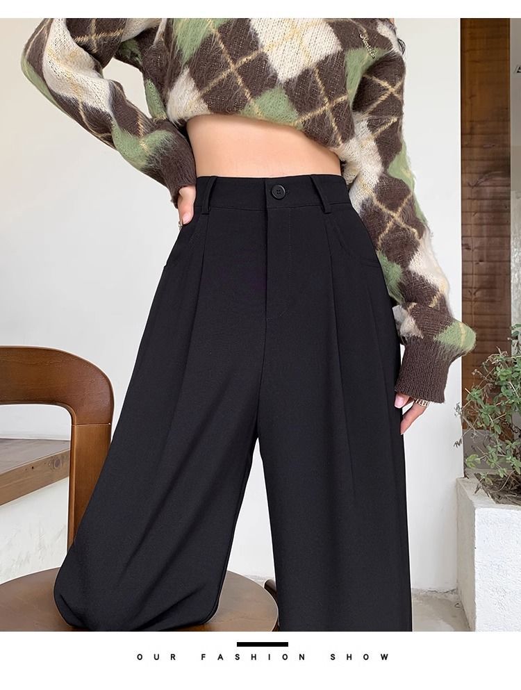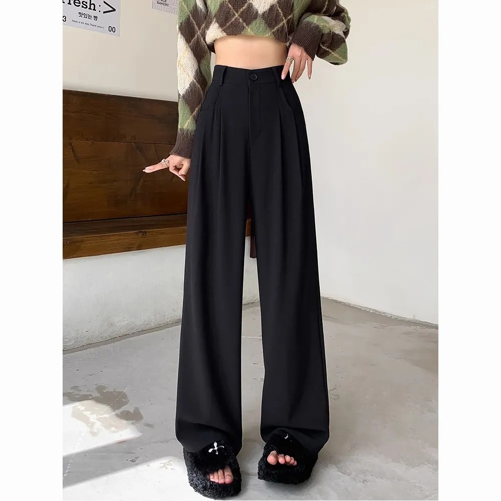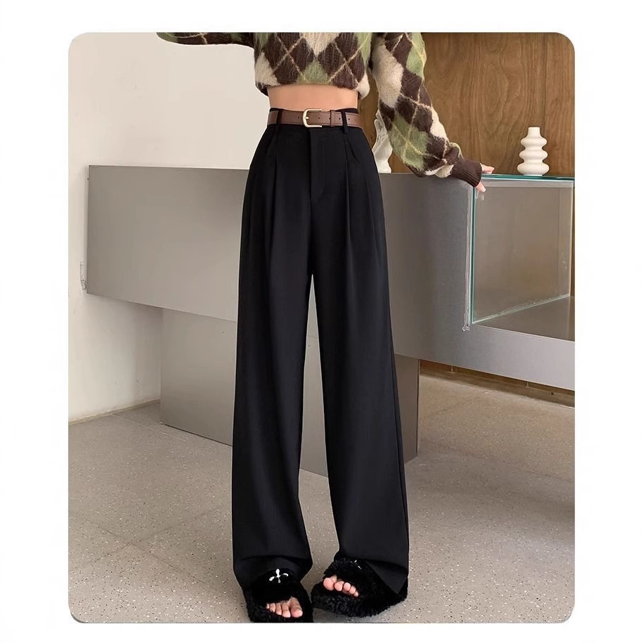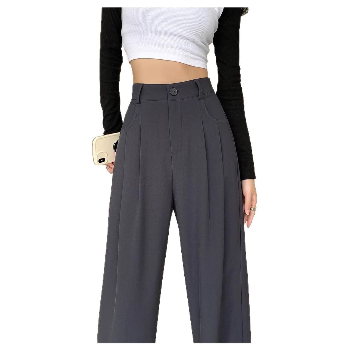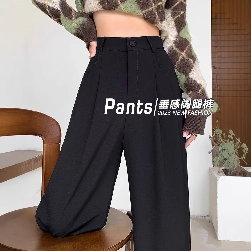 Черные брюки для женщин высокого уровня, чувство весны и осени, новый темперамент с высокой талией прямой, повседневная стрижка узкие широкие брюки