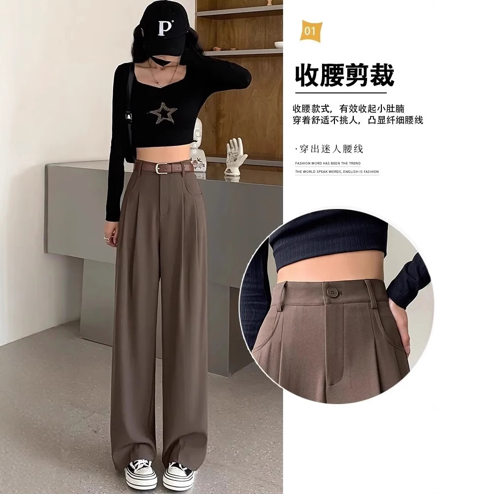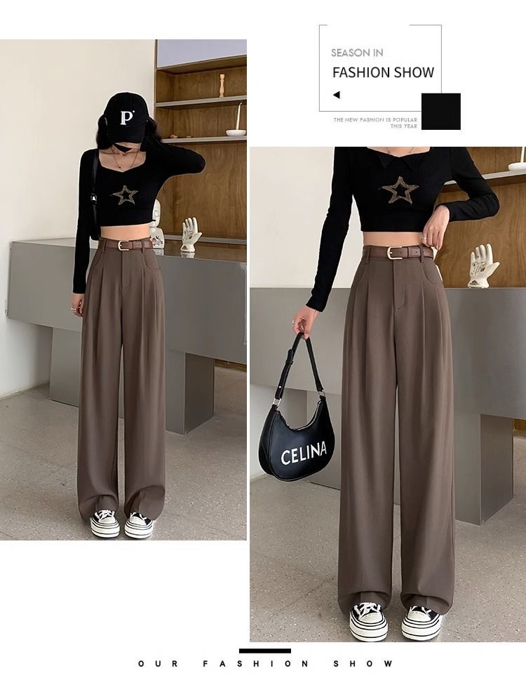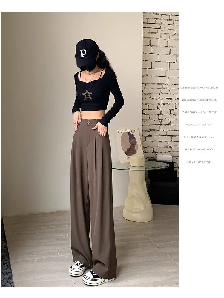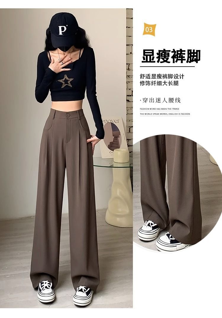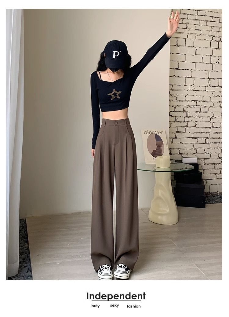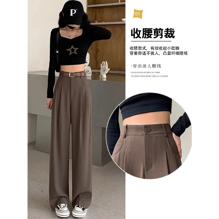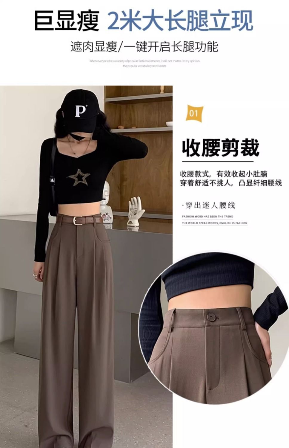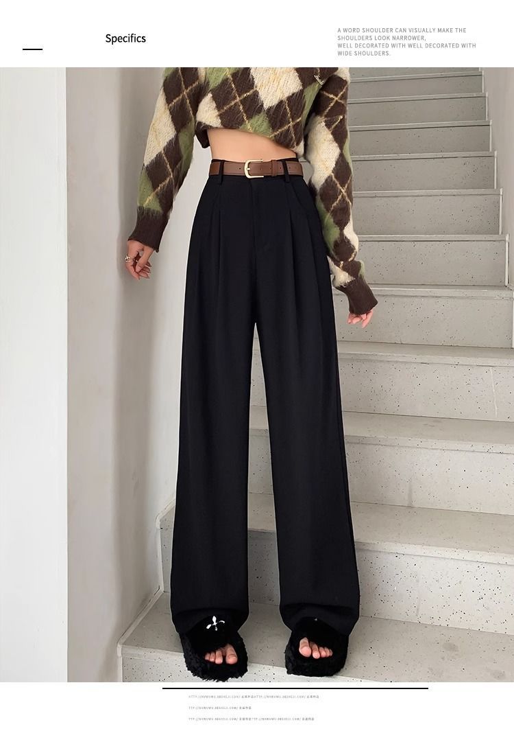Черные брюки для женщин высокого уровня, чувство весны и осени, новый темперамент с высокой талией прямой, повседневная стрижка узкие широкие брюки