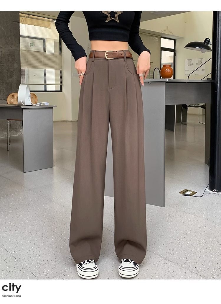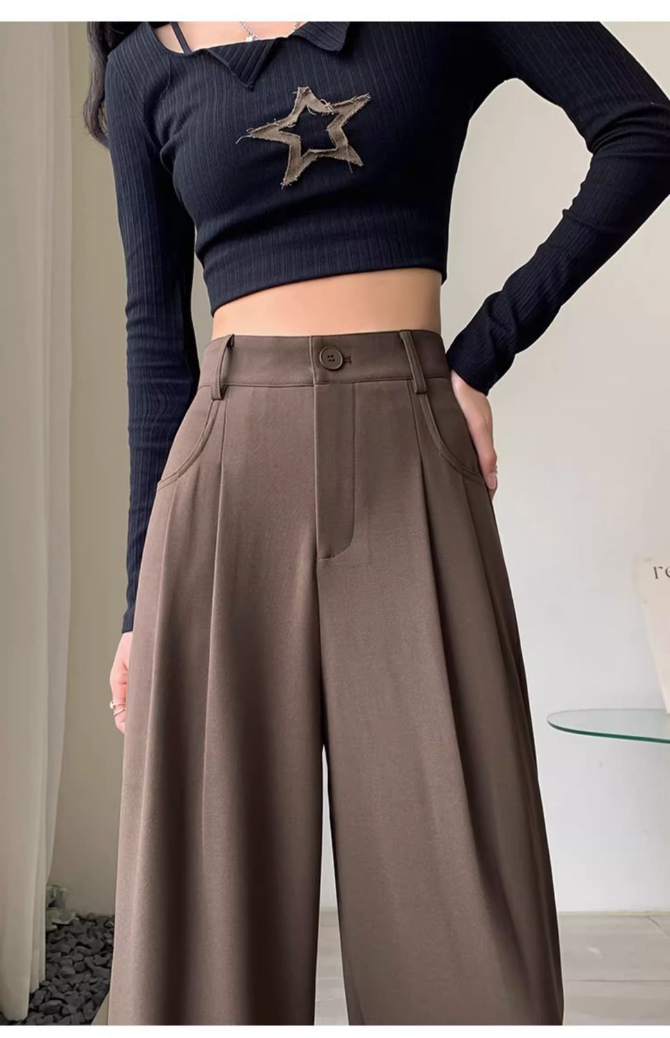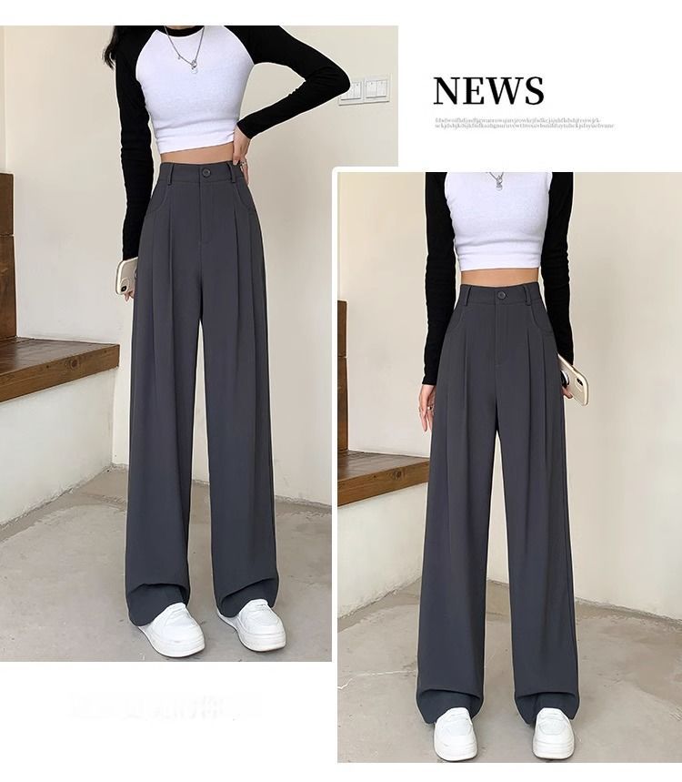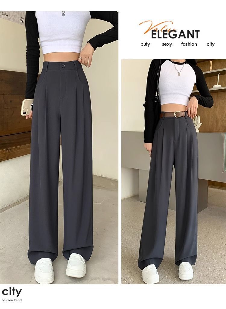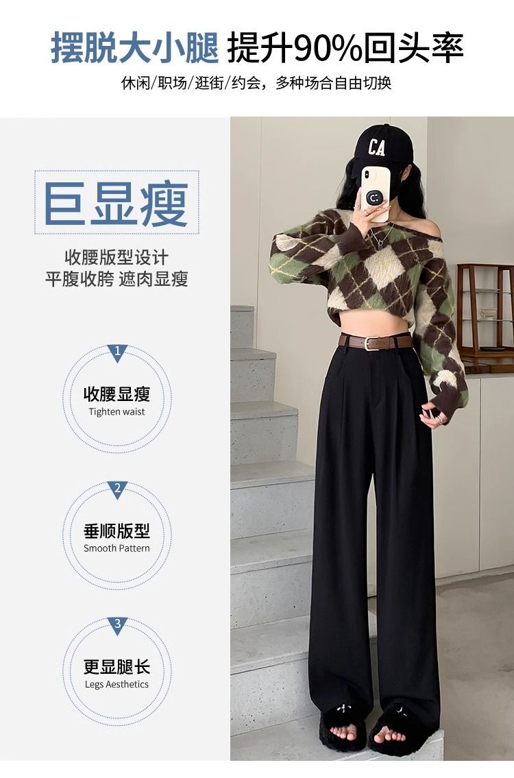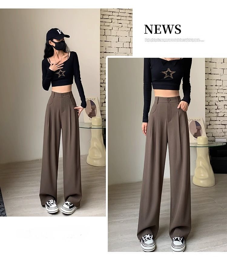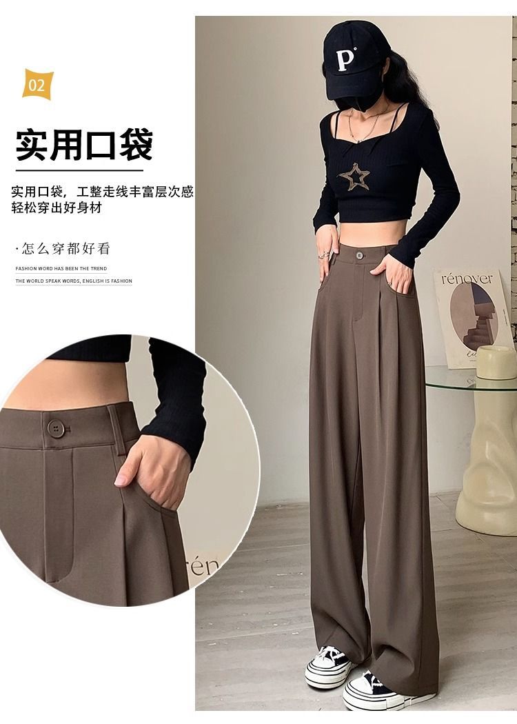 Черные брюки для женщин высокого уровня, чувство весны и осени, новый темперамент с высокой талией прямой, повседневная стрижка узкие широкие брюки