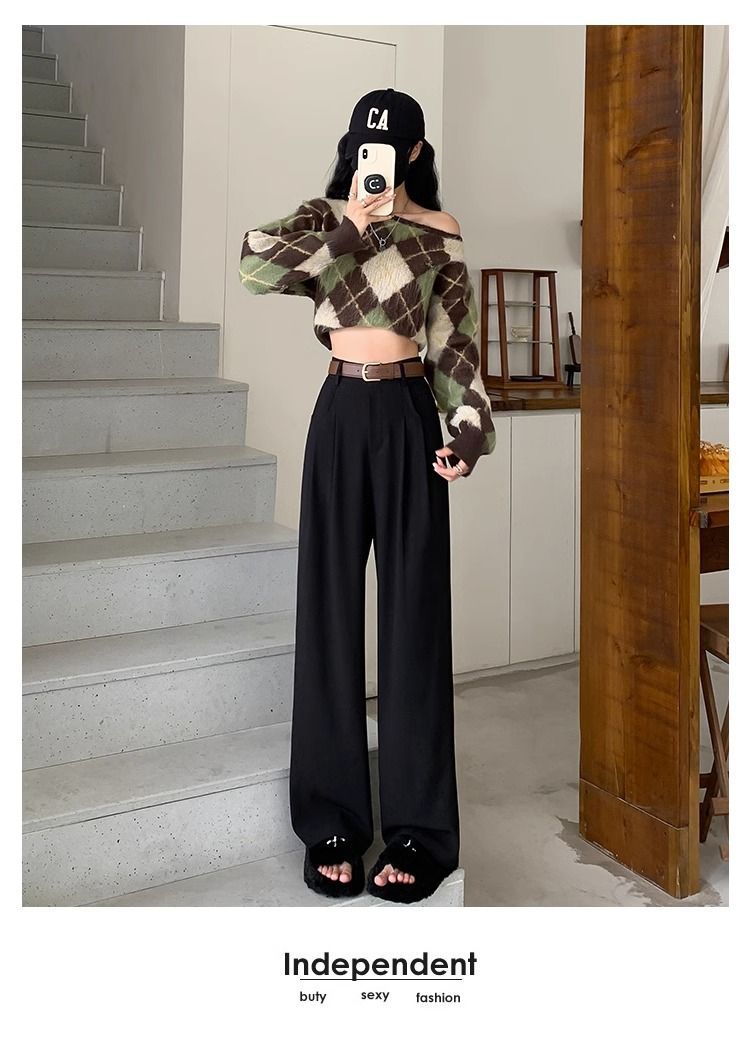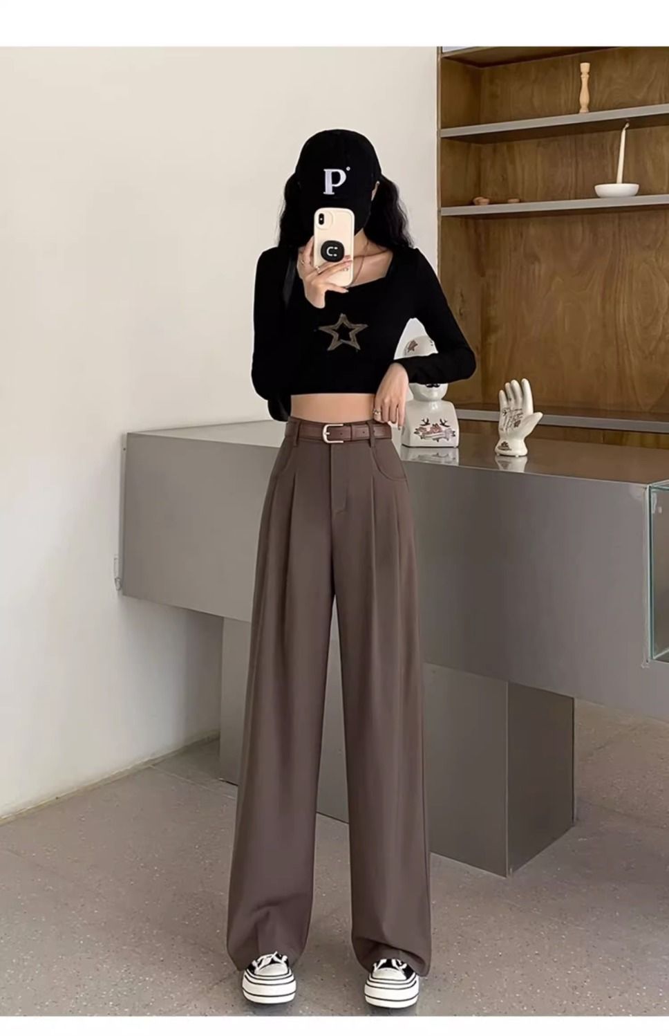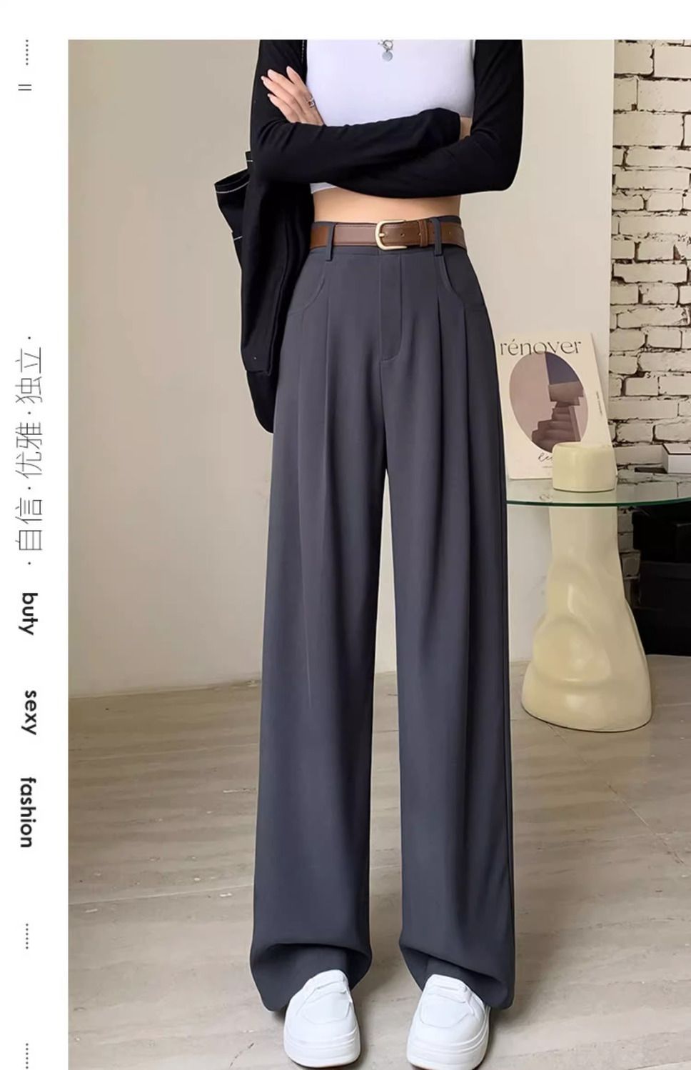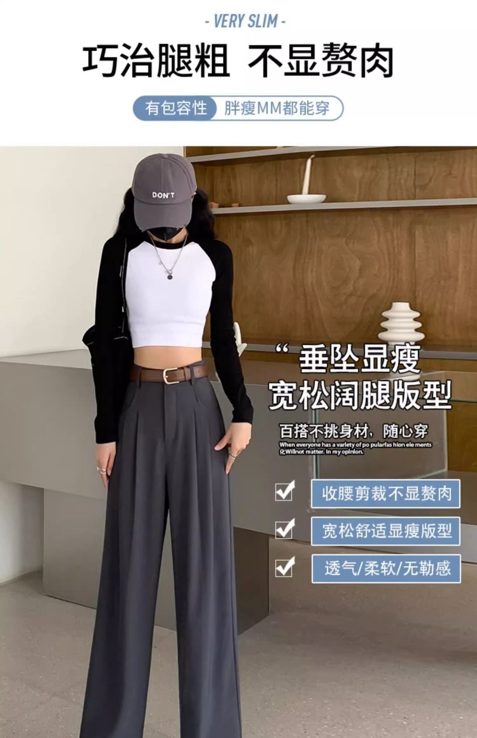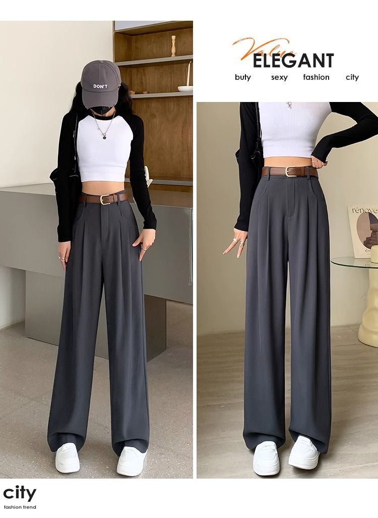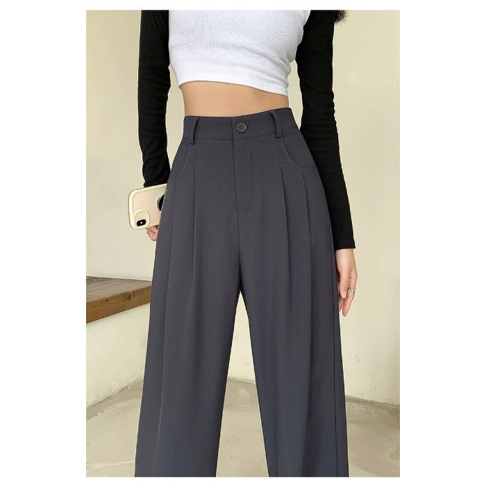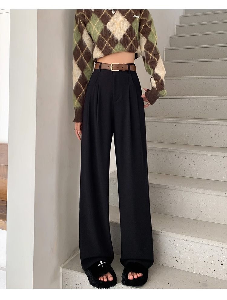 Черные брюки для женщин высокого уровня, чувство весны и осени, новый темперамент с высокой талией прямой, повседневная стрижка узкие широкие брюки