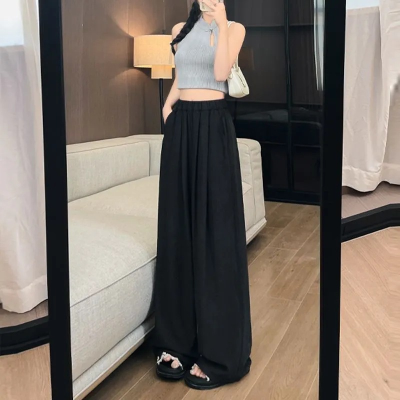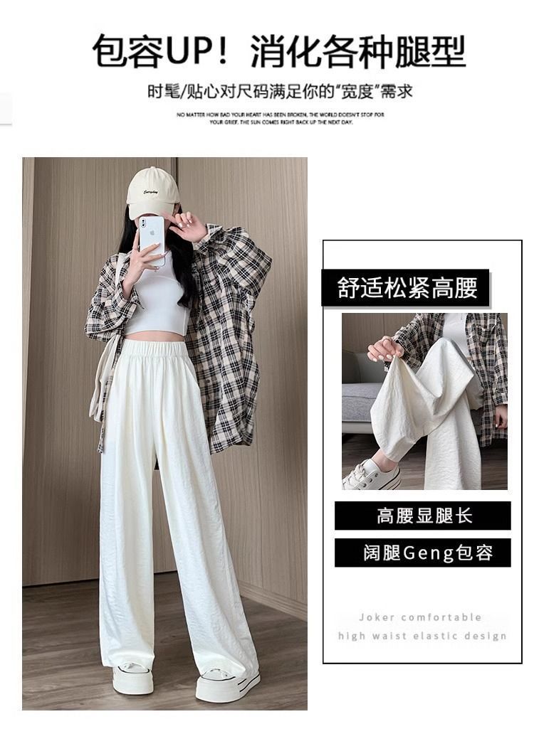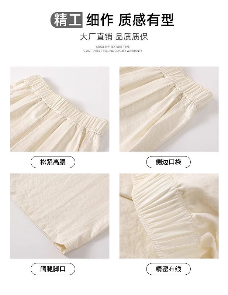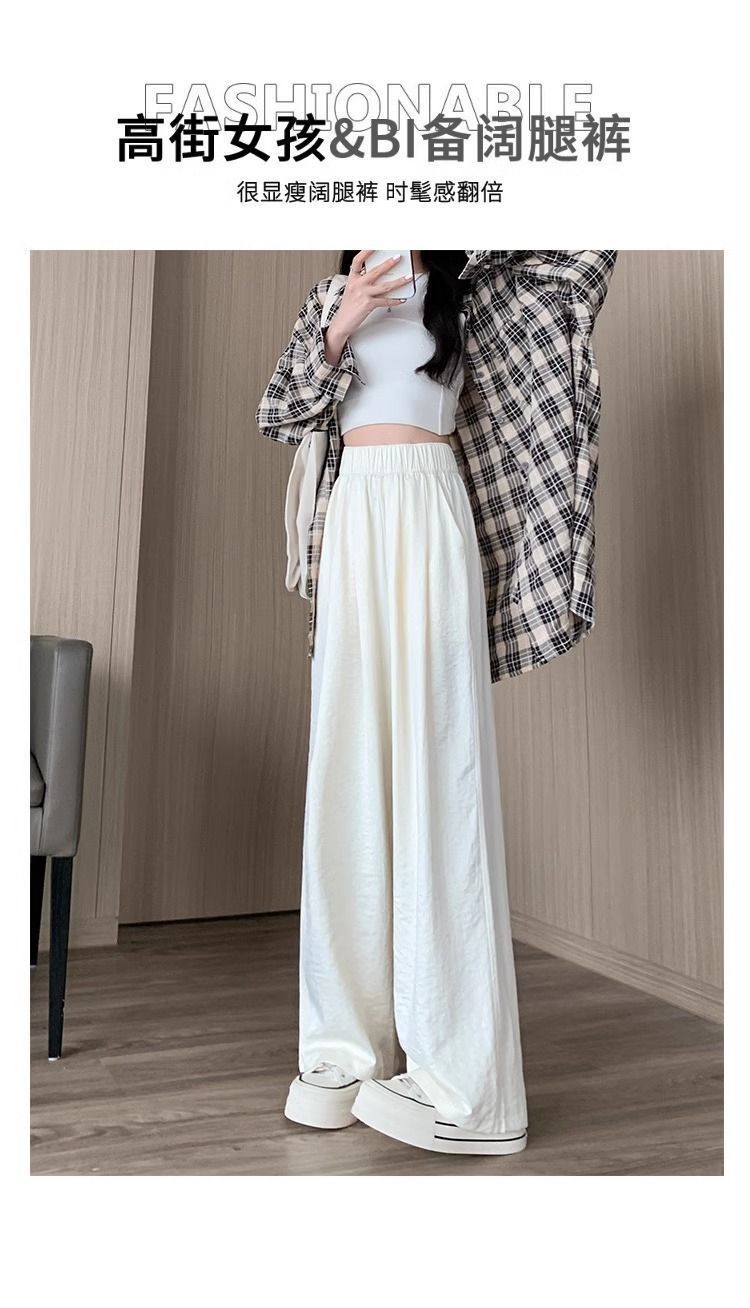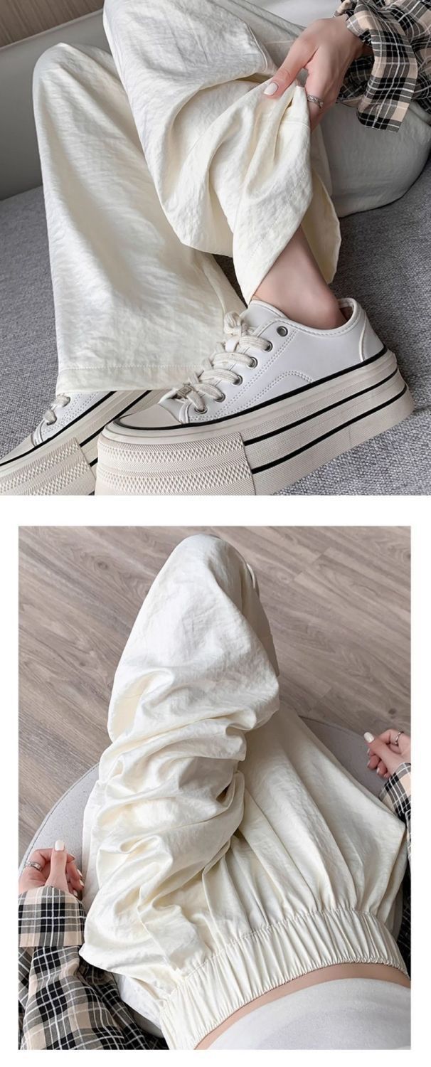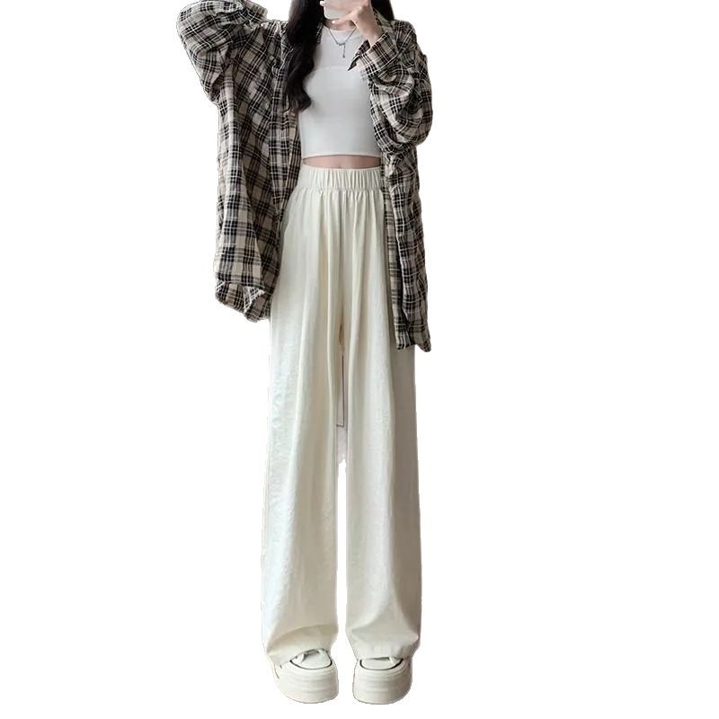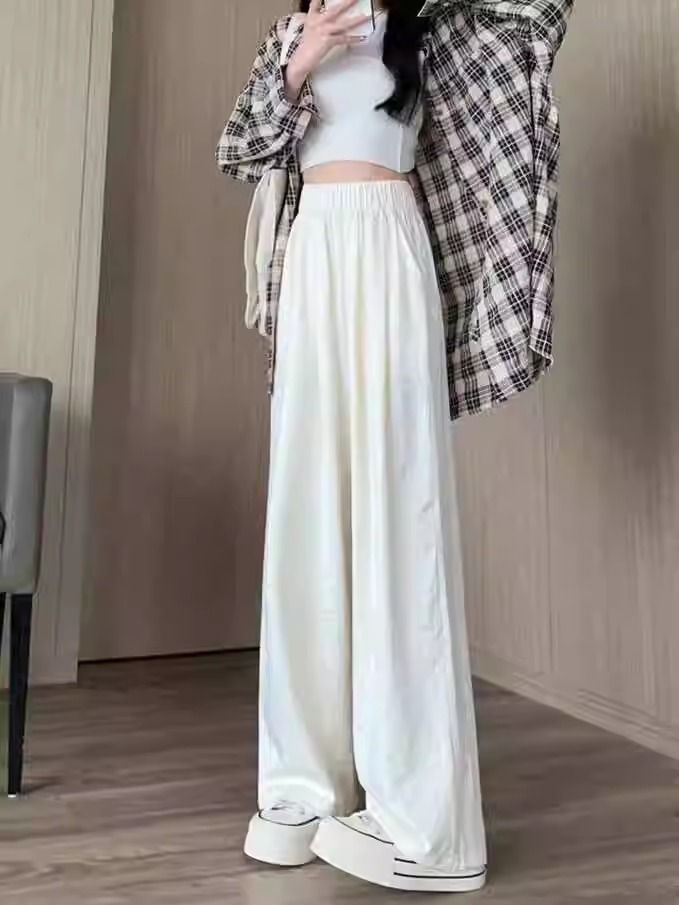 Крем-белые текстуры широкие брюки женские летние тонкие с высокой талией