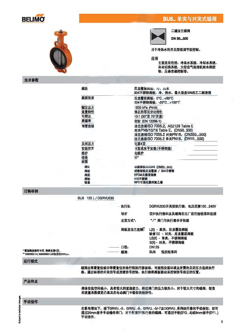博力谋BELIMO电动蝶阀阀体BU6400