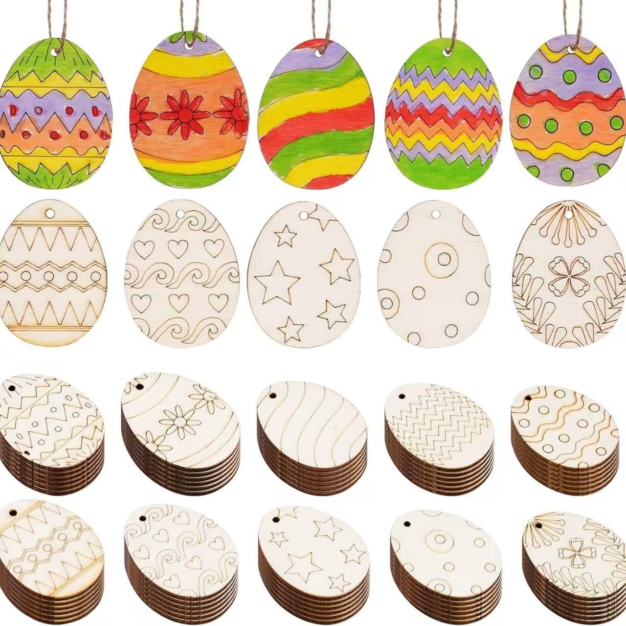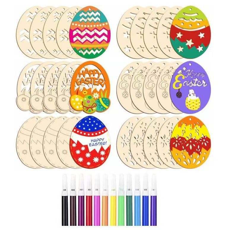 Деревянные 6 различных форм основных цветов резные яйца для Пасхи и DIY окрашенные материалы деревянные ломтики