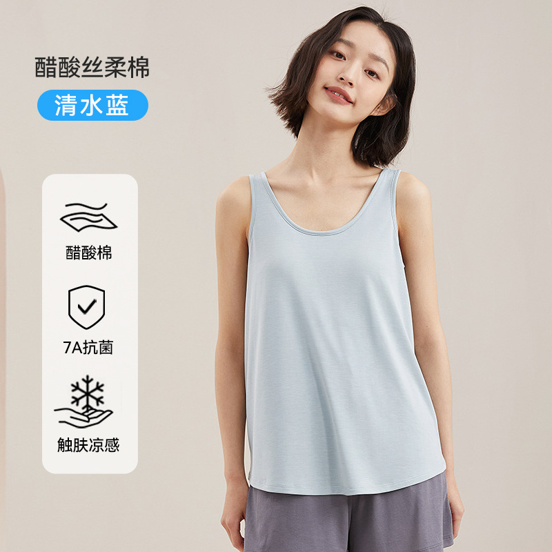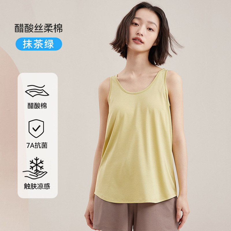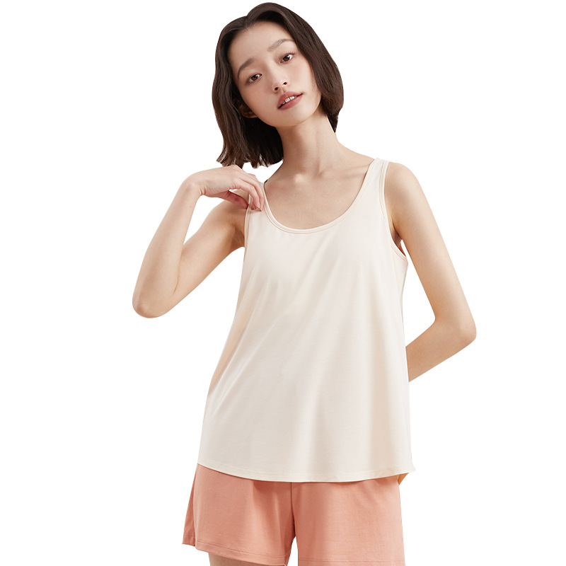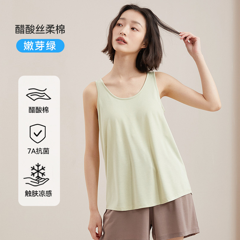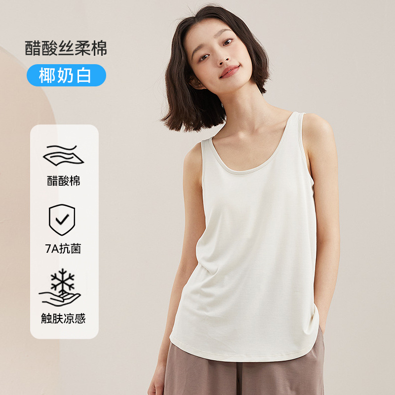 [Охлаждение с подкладкой для груди] Женский топ без рукавов с широкими бретелями на весну и осень, однотонный свободный внутренний носимый топ