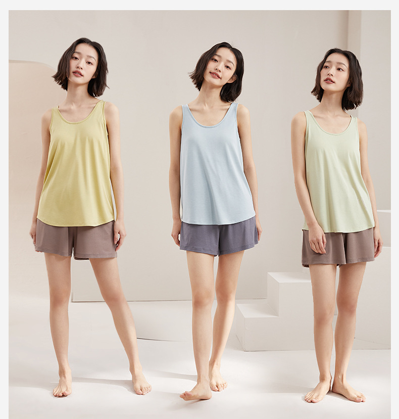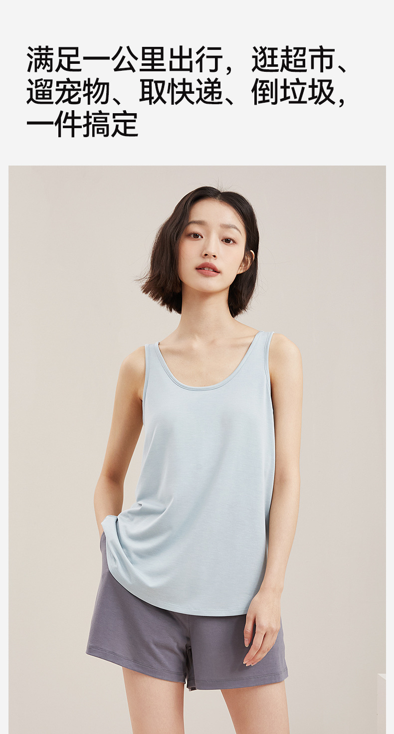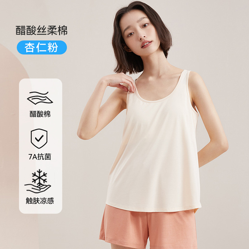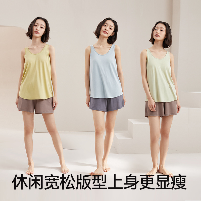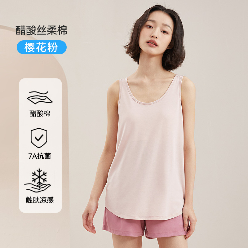[Охлаждение с подкладкой для груди] Женский топ без рукавов с широкими бретелями на весну и осень, однотонный свободный внутренний носимый топ