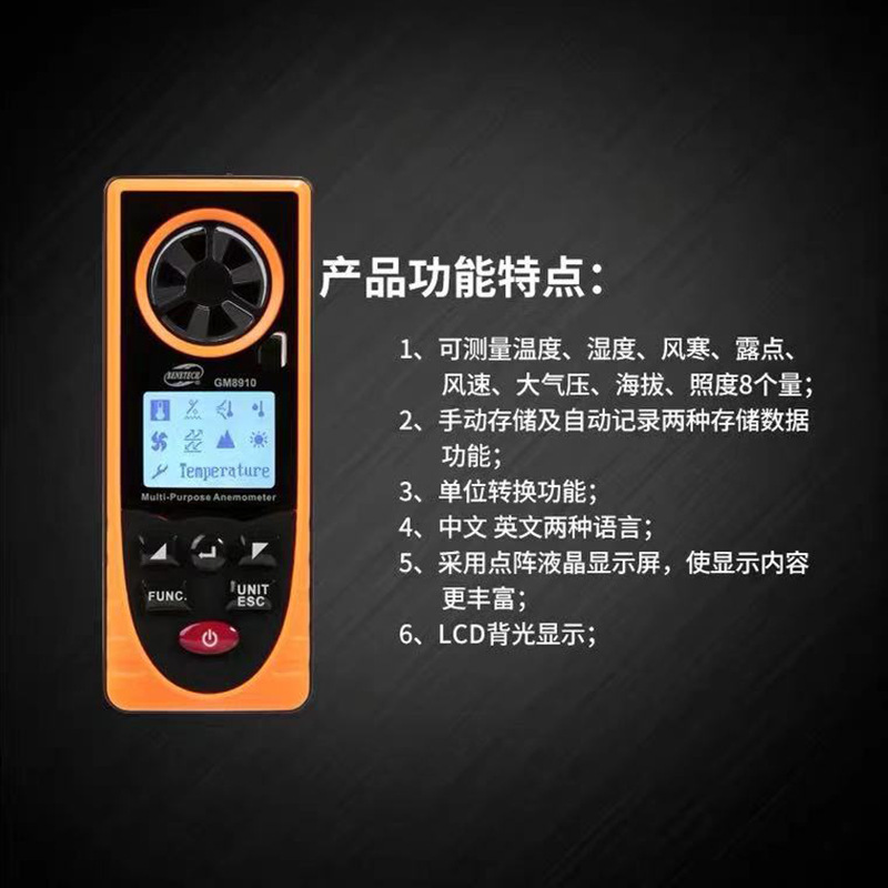 Bingzhi GM8910 многофункциональный анемометр температуры и гигрометр атмосферного давления