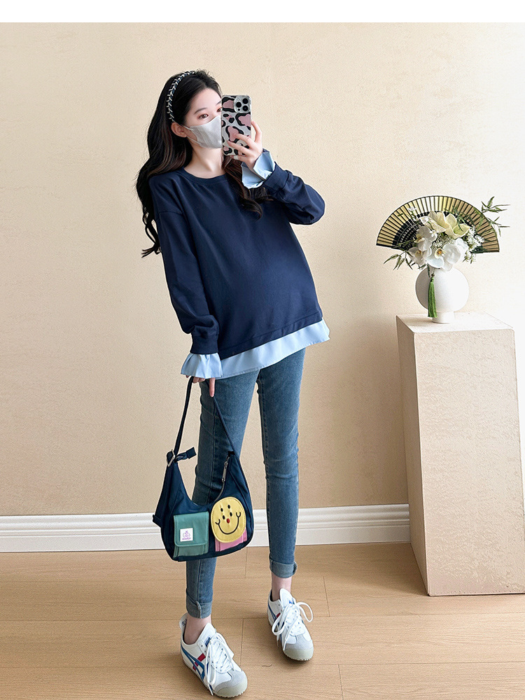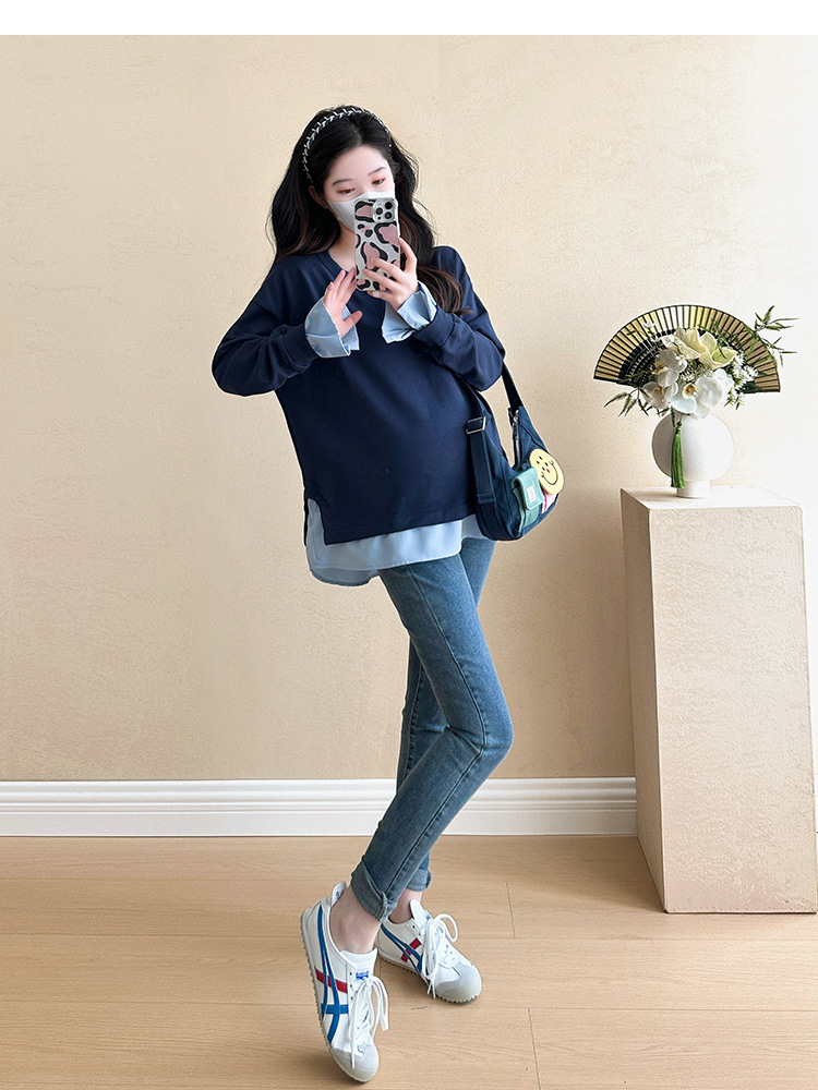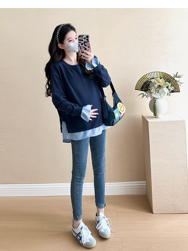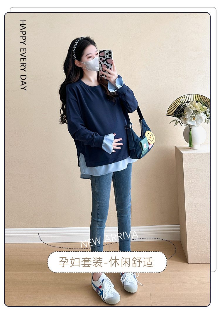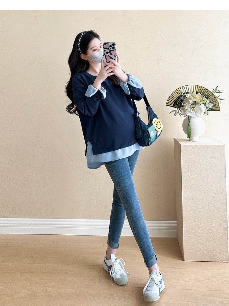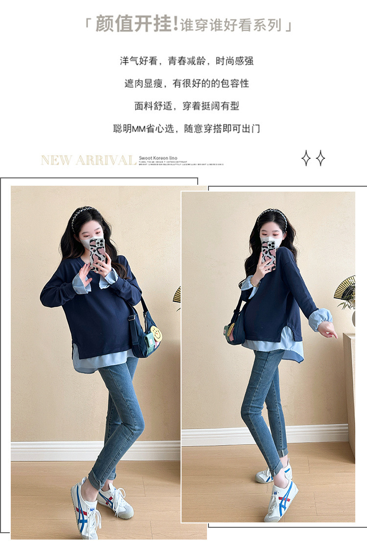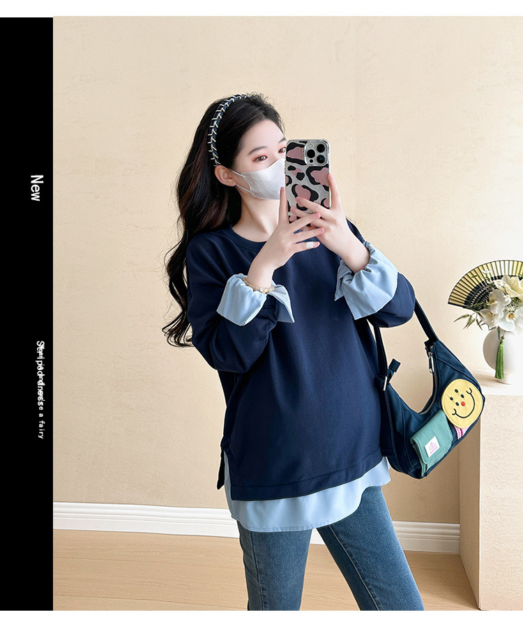 Одежда для беременных Весенняя одежда на модном свободном поддельном свитере