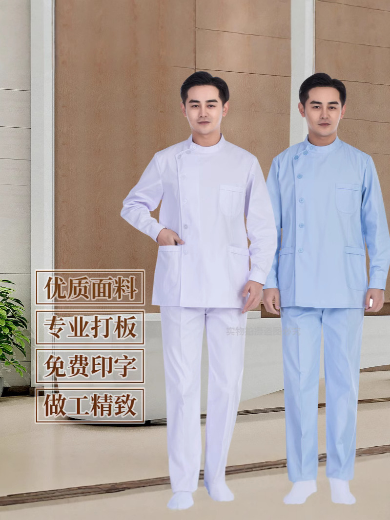Мужской костюм с воротником белого цвета с короткими рукавами (верх); Мужской костюм с воротником синего цвета с короткими рукавами (верх); Мужской костюм с воротником белого пальто с длинными рукавами (верх); Мужской костюм с воротником синего цвета с длинными рукавами (верх); Мужской костюм с воротником белого цвета с короткими рукавами + брюки; Мужской костюм с воротником синего цвета с короткими рукавами + брюки; Мужской костюм с воротником белое пальто с длинными рукавами + брюки; Мужской костюм с воротником, синее пальто с длинными рукавами + брюки