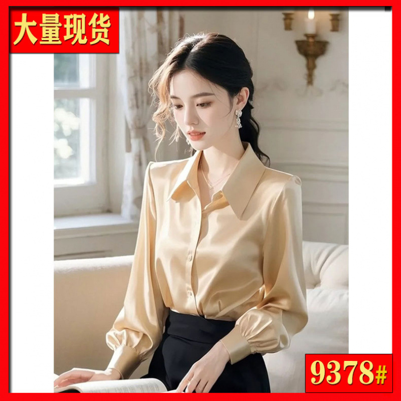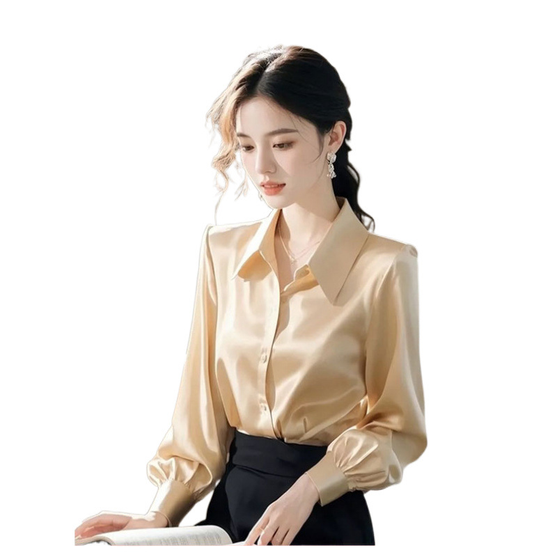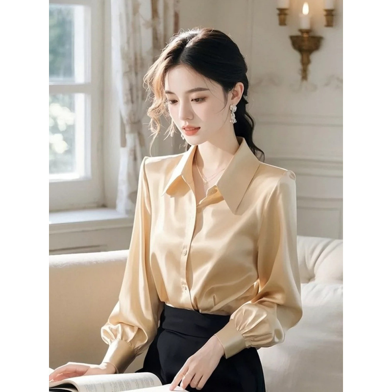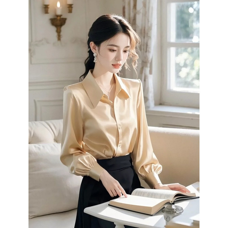 2025 новый женский легкий экстравагантный чувство высокого класса Гонконг стиль рубашка уникальная красивая шампанское атласная рубашка топ весна