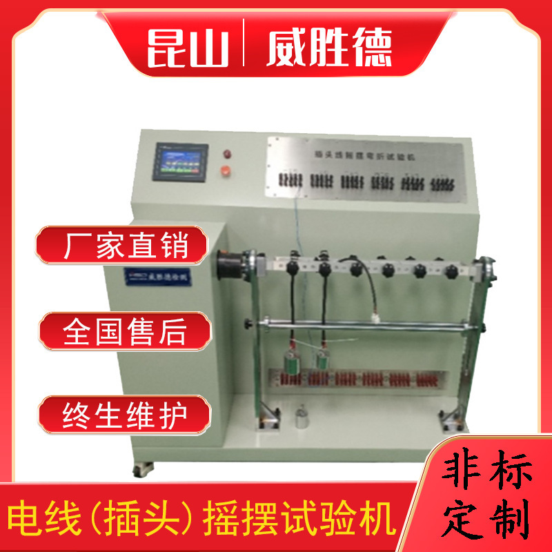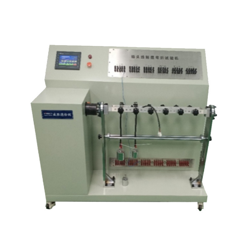 适用于有关生产厂家和质检部门对电源线、DC线进行弯曲试验。本机可以测试插头引线及电线耐折强度,是将试品固定于夹具后施重,经弯曲到预定次数后,检测其断线率,或无法通电时机台自动停机,检视其总计弯曲次数。
