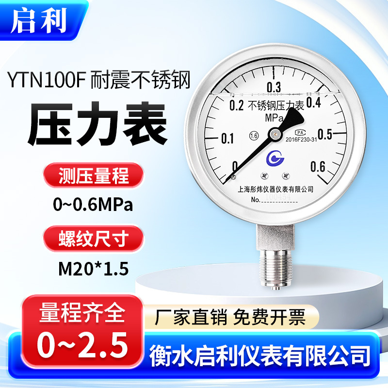 Qili [YTN100F нержавеющая сталь ударопрочный манометр 0-0, 6 МПа] Гидравлическое масло с радиальным давлением воды