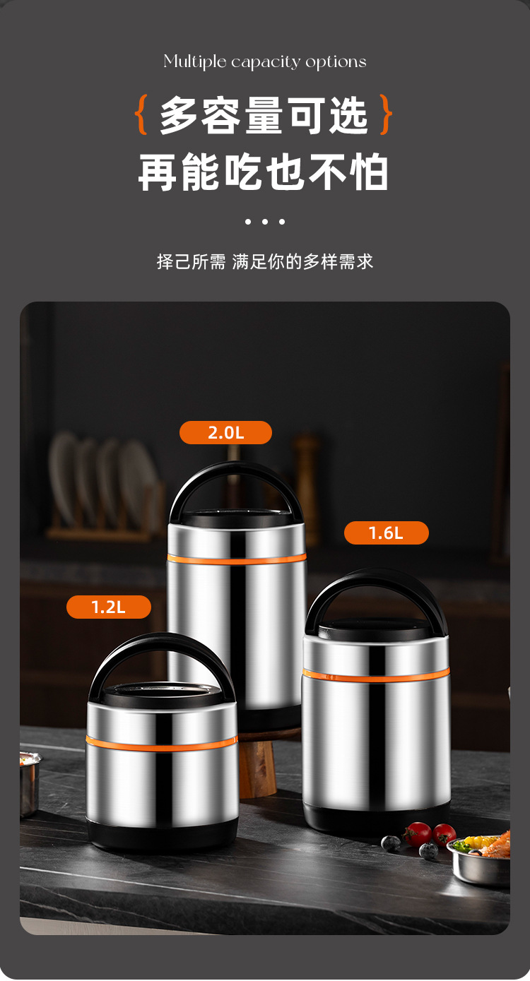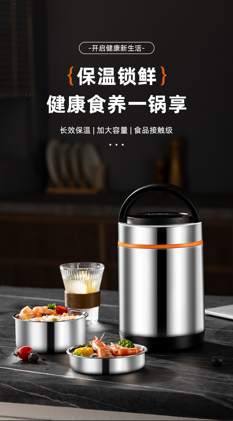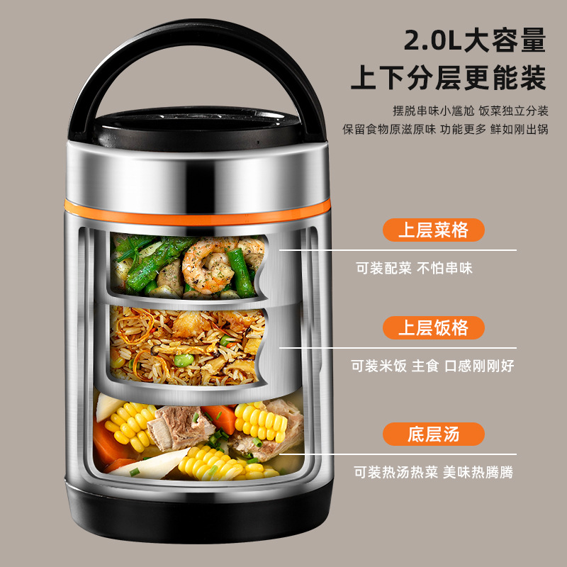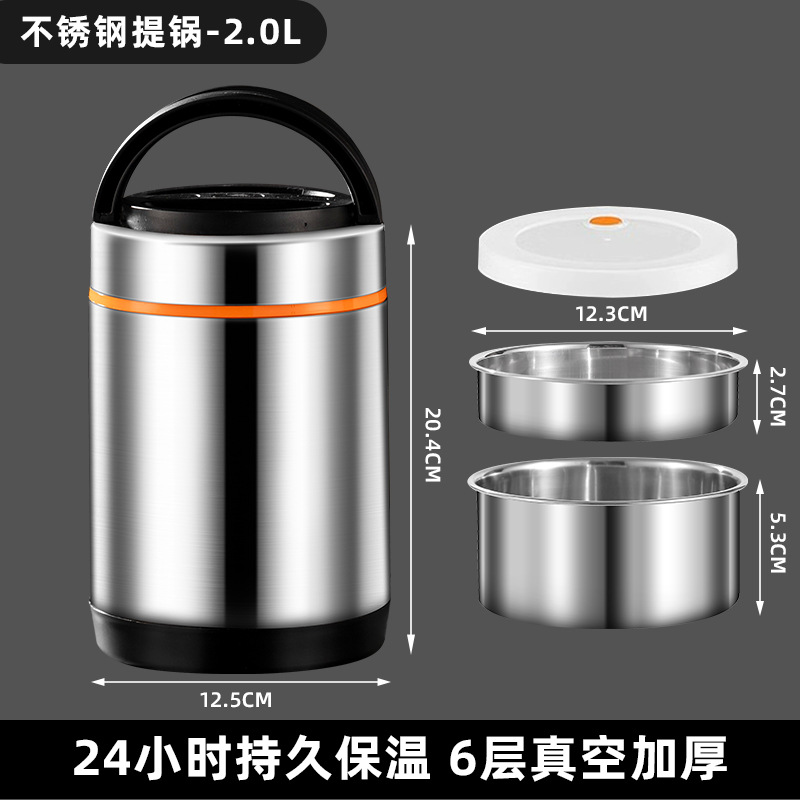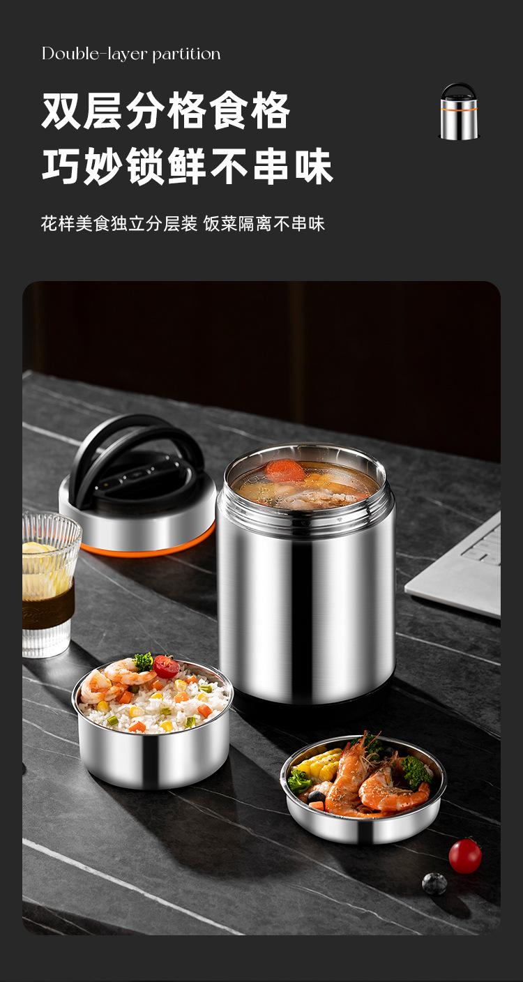 Большой двухслойный изолированный ланч-бокс из нержавеющей стали, большой вместительный ланч-бокс для офисных работников и студентов