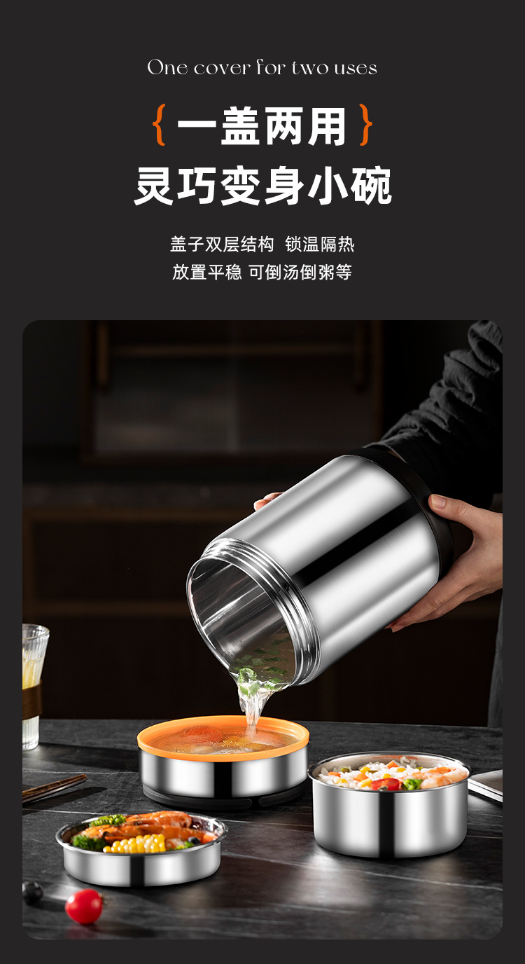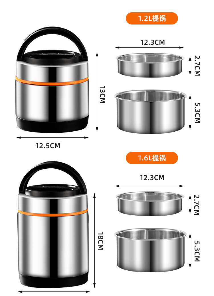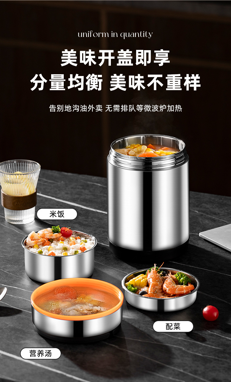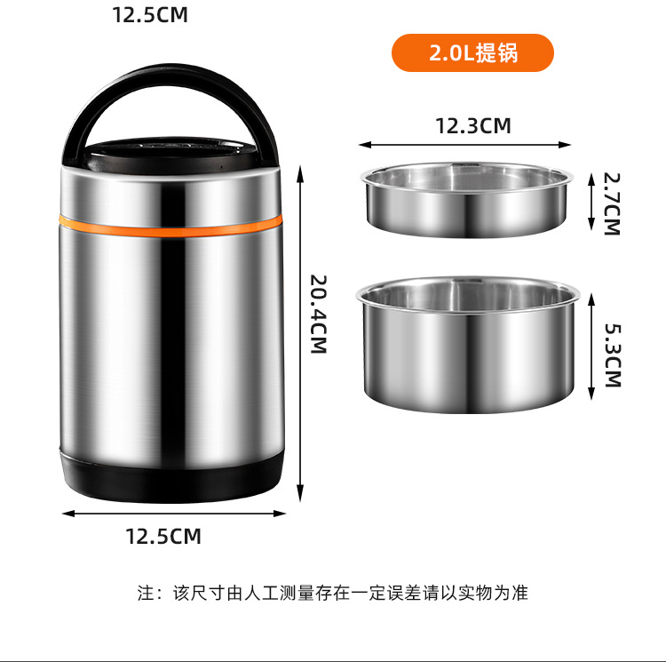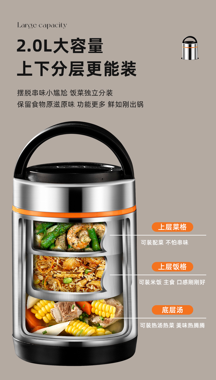 Большой двухслойный изолированный ланч-бокс из нержавеющей стали, большой вместительный ланч-бокс для офисных работников и студентов