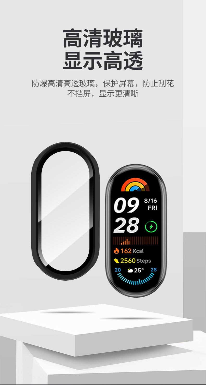 Подходит для Xiaomi Mi Band 10, защитный чехол, встроенный твердый корпус с закаленной пленкой, защитный чехол Xiaomi Mi Band 89.
