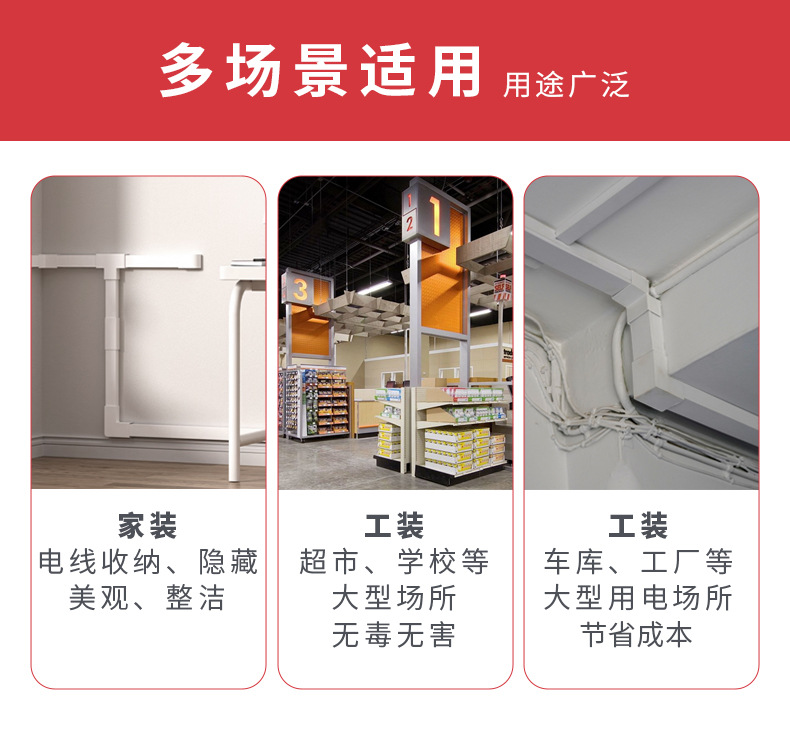 Накладной огнестойкий проводной канал из ПВХ для промышленного декора для электрических и сетевых кабелей, белый квадратный проводной канал.