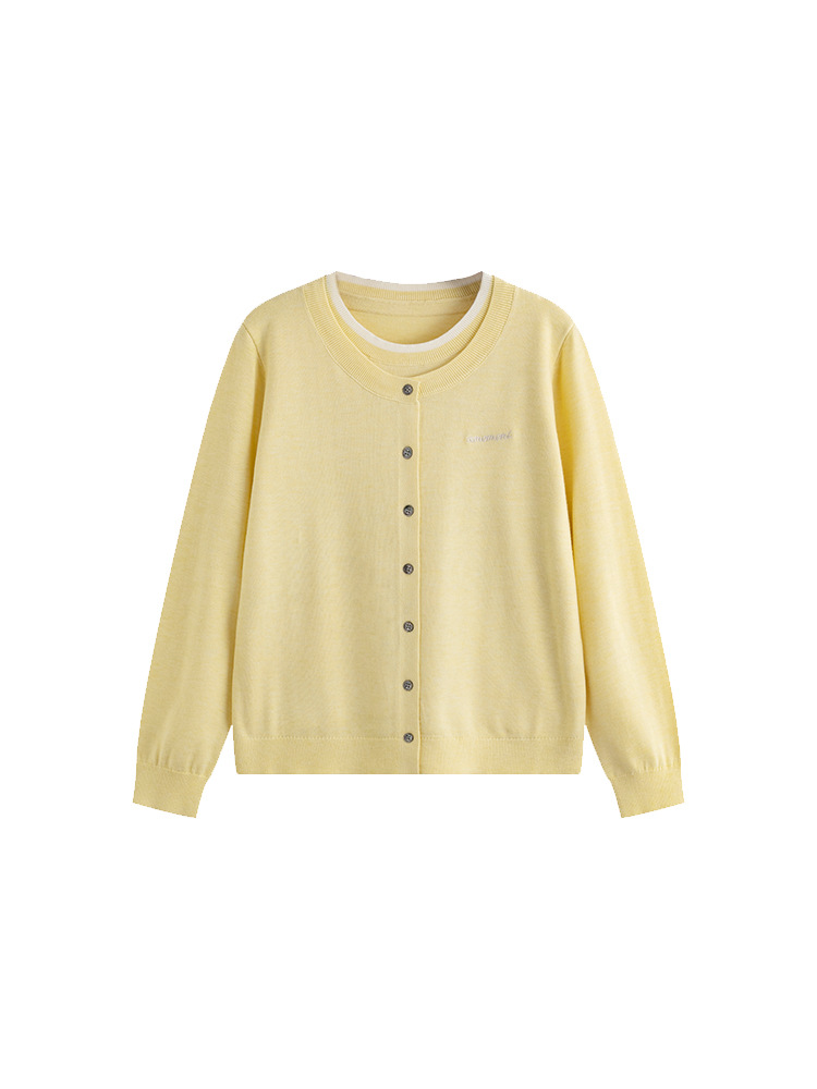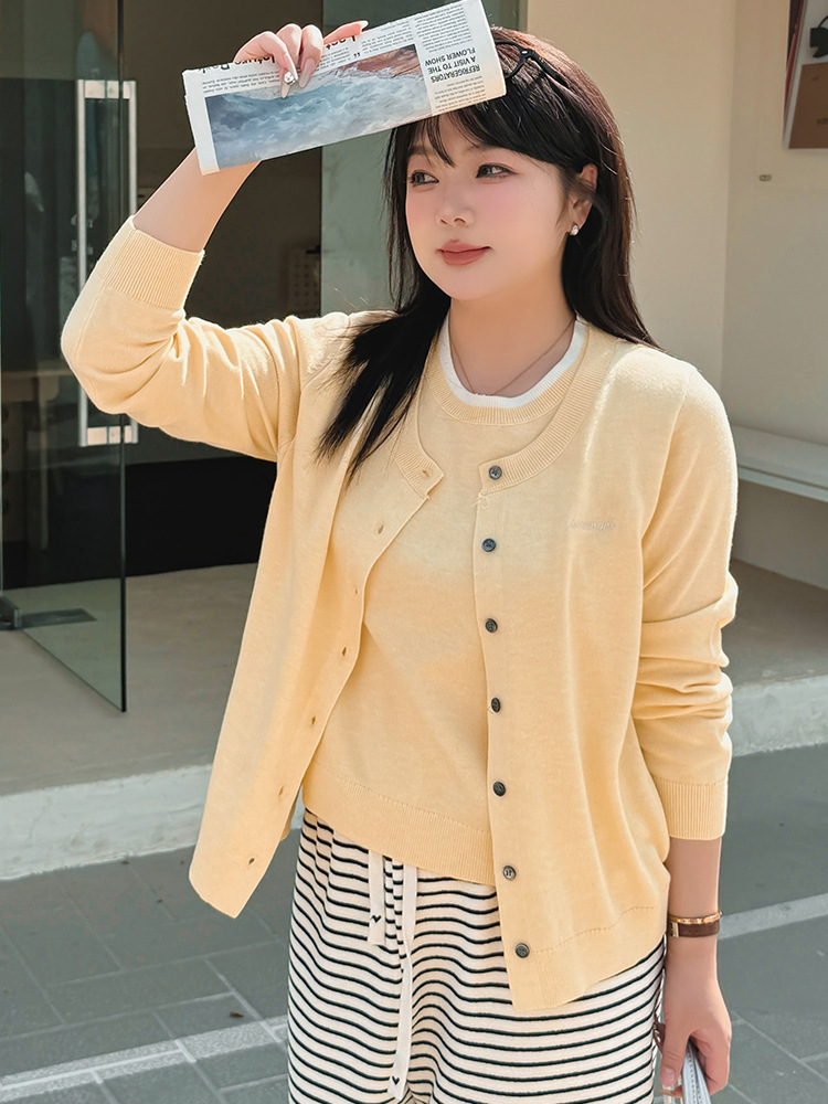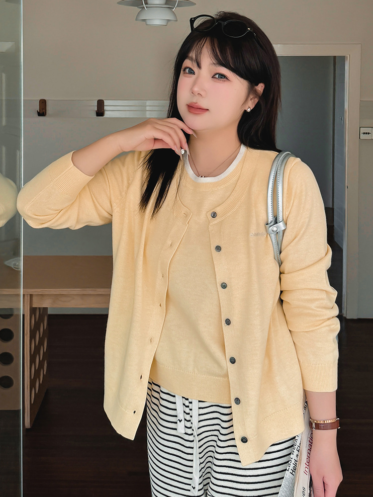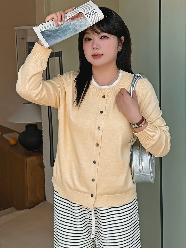 Женский топ из искусственной ткани с круглым вырезом больших размеров, кардиган с длинными рукавами на осень 2025 года, свободный вязаный кардиган для полных женщин 22829.
