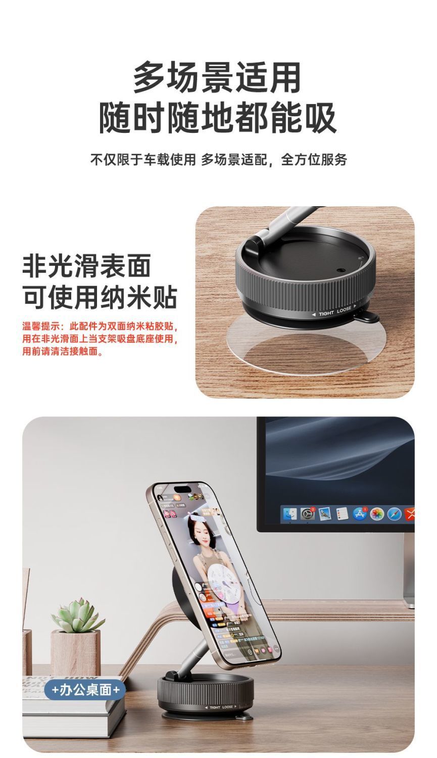 [Обсидиан черный] Магнитная подставка на вакуумной присоске; [Люминный свет белый] Магнитная подставка на вакуумной присоске