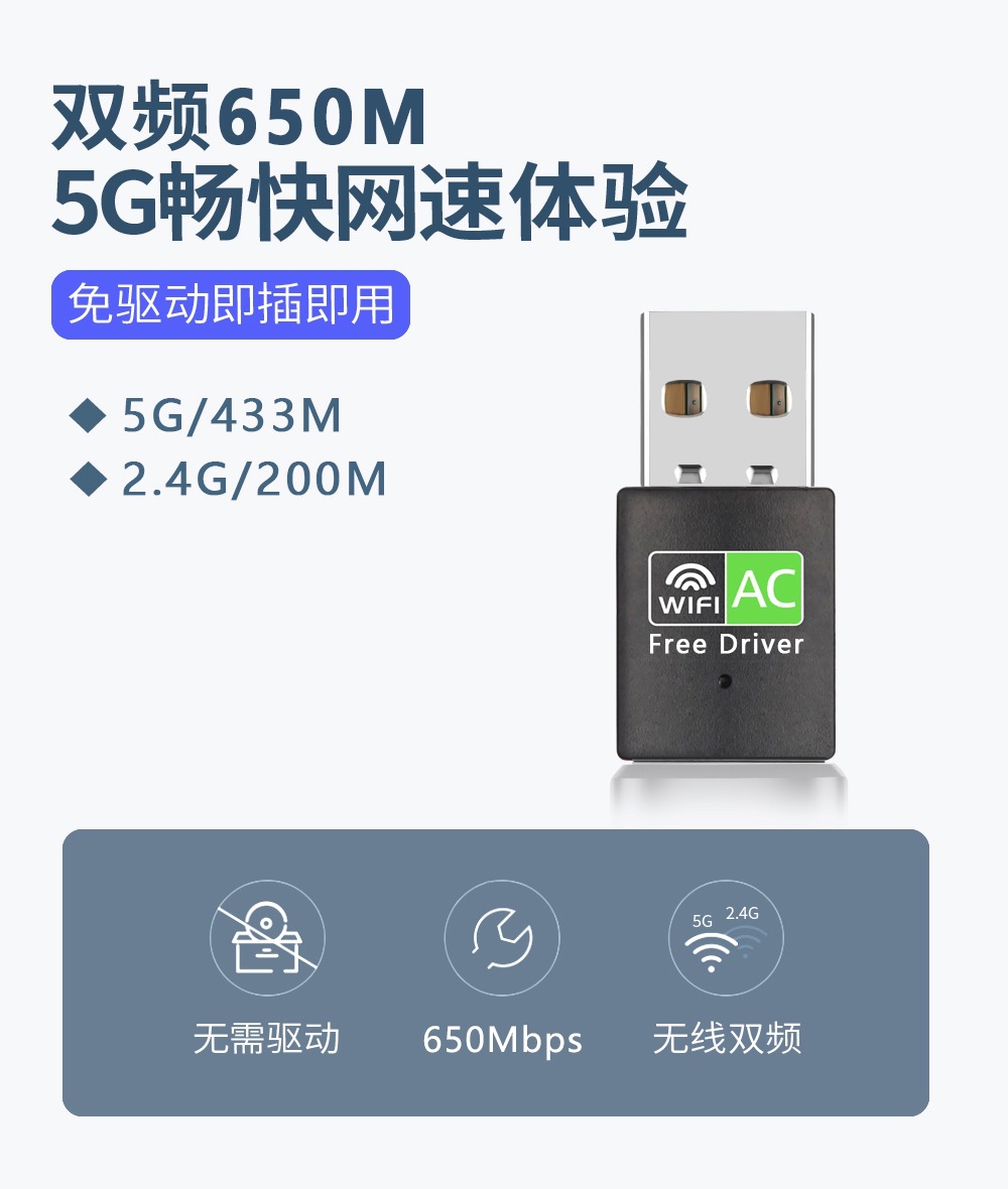 RTL8811CU Настольный ноутбук WiFi-приемник-передатчик USB650M Двухдиапазонная беспроводная сетевая карта 5G