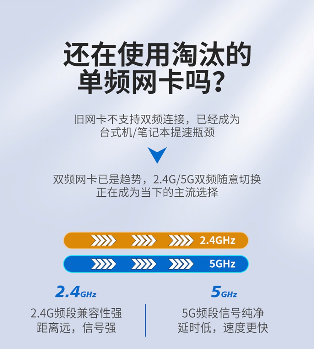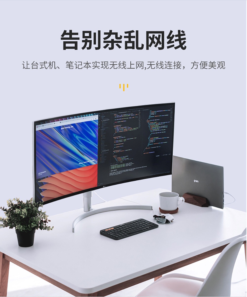 无线传输速率:2.4G 频段可高达200Mbps;5G 频段可高达433Mbps。