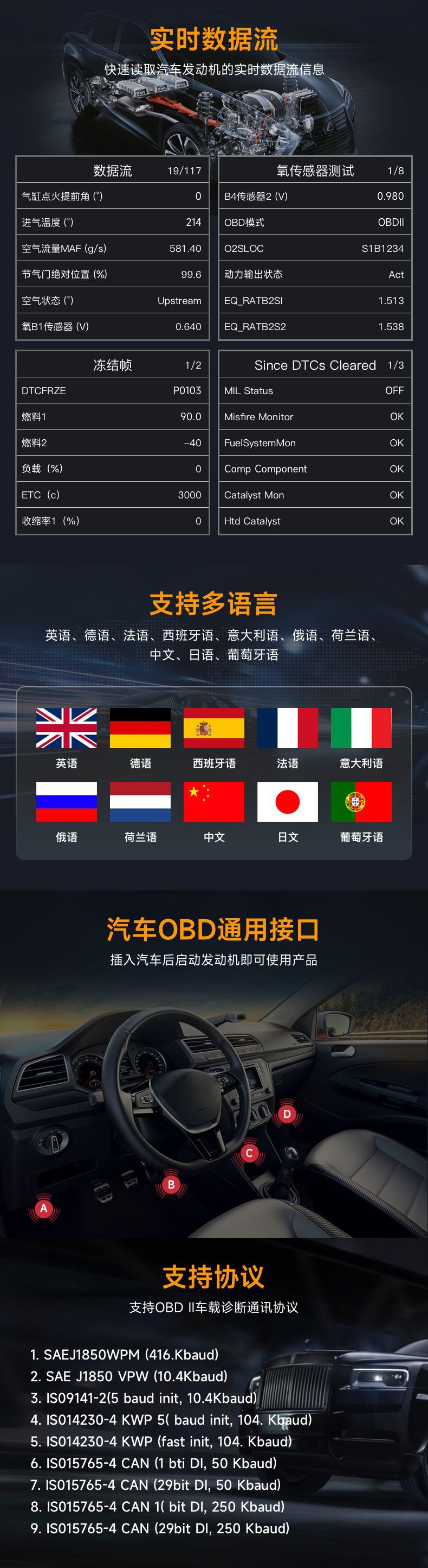Диагностический прибор для автомобилей, диагностический инструмент OBD, детектор неисправностей двигателя, сканер неисправностей ELM327, OBD2
