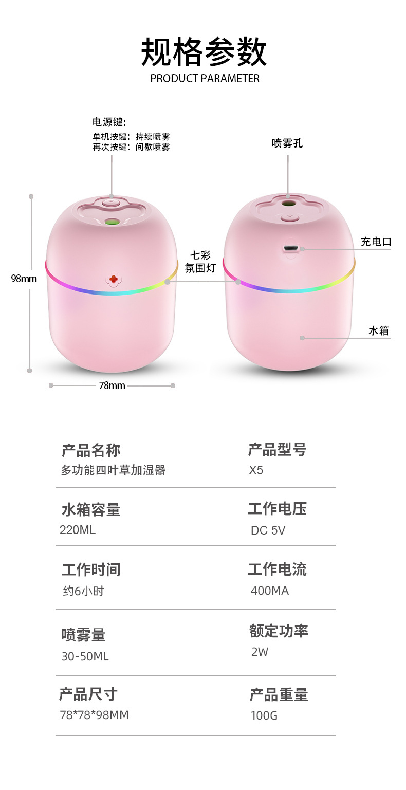 Новый Lucky увлажнитель мини USB домашний портативный увлажнитель X5 Clover бесшумный автомобильный увлажнитель