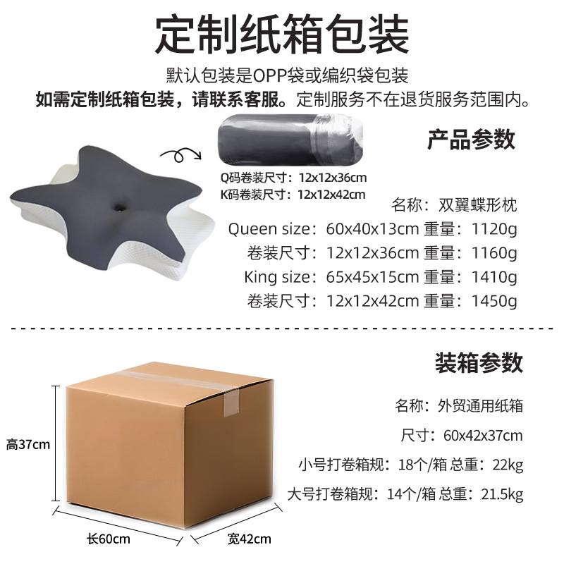 Трансграничная амазонка в рулонов рога бабочки с медленным отскоком Хлопковая подушка памяти для домашнего шейного отдела позвоночника Нулевое давление Подушка памяти