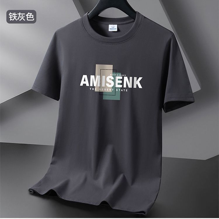 2025 новая мужская футболка с коротким рукавом летняя рубашка с круглым вырезом, универсальная повседневная футболка с принтом большого размера тренд топ