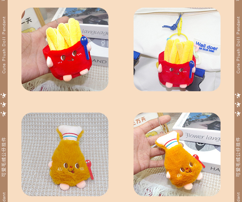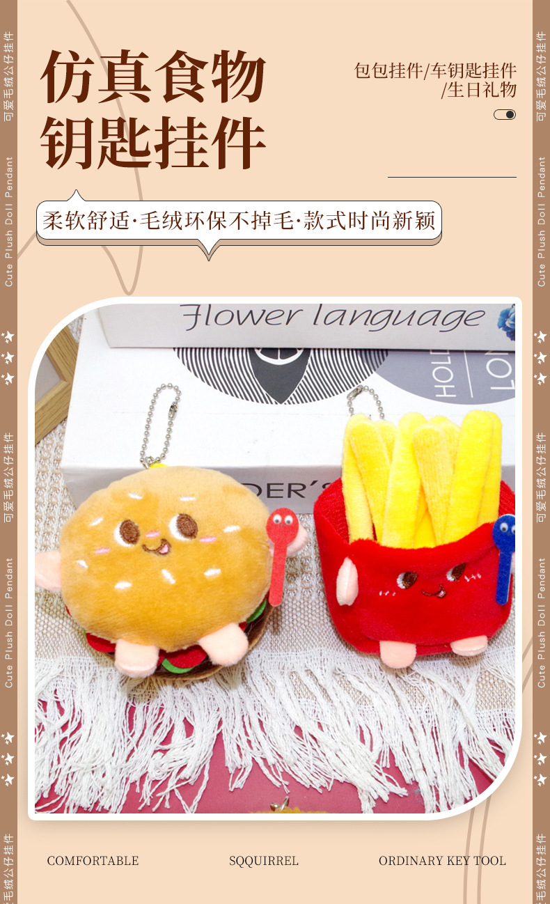 Имитация гамбургера, картофеля фри, подвеска в виде еды, кукла, пара, плюшевый брелок, хот-дог, куриная ножка, маленькая кукла, студенческая подвеска
