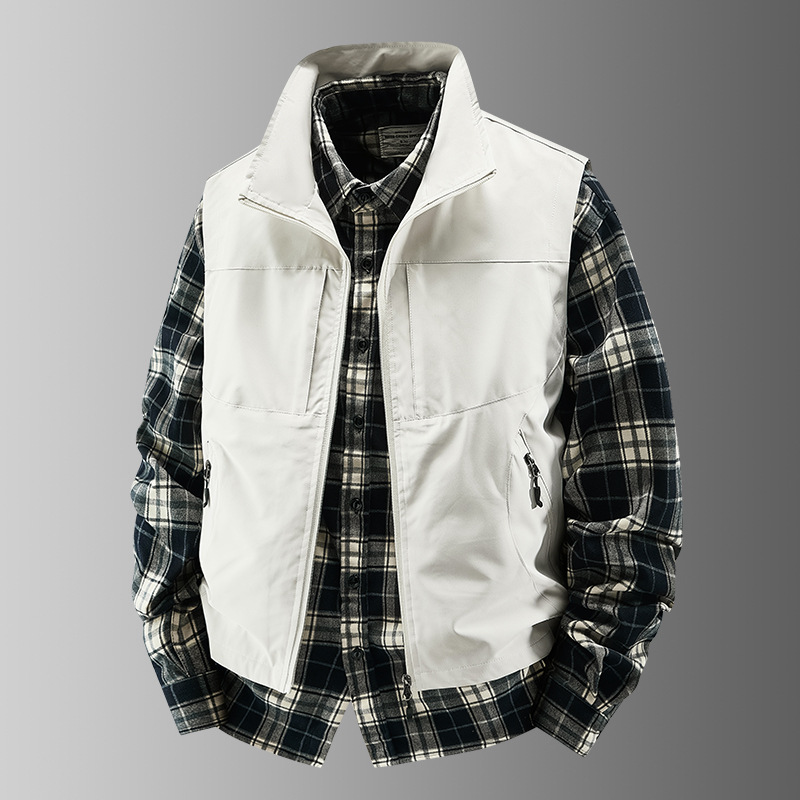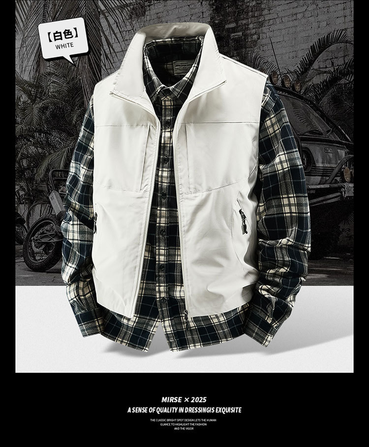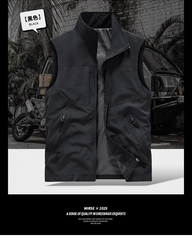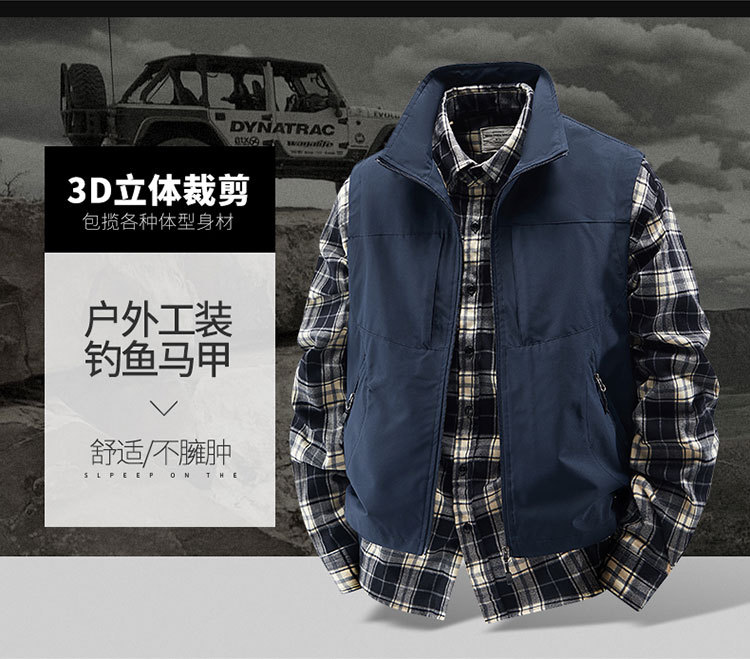 Трансграничный оптовый жилет мужской повседневный воротник открытый жилет плечо мужской рыбалка жилет среднего возраста с принтом LOGO