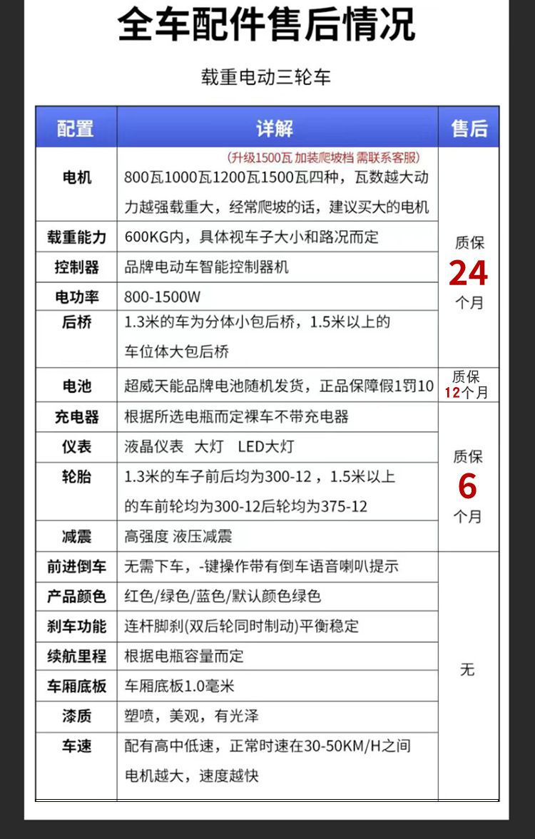 1.3*0,9 грузоподъемность 400kg + подарочная упаковка, 48 В 20 А Срок службы батареи Chaowei Tianneng 30 километров; 1.3*0,9 грузоподъемность 400kg + подарочная упаковка, 60V20A Chaowei Tianneng Срок службы батареи 40 километров; 1.3*0,9 грузоподъемность 400kg + подарочная упаковка, 60V32A Chaowei Tianneng Срок службы батареи 60 километров; 1.3*0,9 грузоподъемность 400kg + подарочная упаковка, 60V45A Chaowei Tianneng Срок службы батареи 80 километров; Объемность 1,3*0,9 400kg + подарочная упаковка, в пустой автомобиль не входят батарейки; Грузоподъемность 1,5*1 500kg + подарочная упаковка, 48 В 20 А Чауи Тяньэн Срок службы батареи 30 километров; Грузоподъемность 1,5*1 500kg + подарочная упаковка, 60 В 20 А Чауи Тяньэн Срок службы батареи 40 километров; Грузоподъемность 1,5*1 500kg + подарочная упаковка, 60 В 32 А Чауи Тяньэн Срок службы батареи 60 километров; Грузоподъемность 1,5*1 500kg + подарочная упаковка, 60V45A Чауи Тяньэн Срок службы батареи 80 километров; Нагрузка 1,5*1 500kg + подарочная упаковка, в пустой автомобиль не входят батарейки; 1,8*1,1 грузоподъемность 500kg + подарочная упаковка, 48 В 20 А Срок службы батареи Chaowei Tianneng 30 километров; 1,8*1,1 грузоподъемность 500kg + подарочная упаковка, 60 В 20 А, срок службы батареи Chaowei Tianneng 40 километров; 1,8*1,1 грузоподъемность 500kg + подарочная упаковка, 60 В 32 А, срок службы батареи Chaowei Tianneng 60 километров; 1,8*1,1 грузоподъемность 500kg + подарочная упаковка, 60V45A Chaowei Tianneng Срок службы батареи 80 километров; 1,8*1,1 грузоподъемность 500kg + подарочная упаковка, в пустой автомобиль не входят батарейки; 2*1,2 грузоподъемность 600kg + подарочная упаковка, 48V20A Chaowei Tianneng Срок службы батареи 30 километров; 2*1,2 грузоподъемность 600kg + подарочная упаковка, 60V20A Chaowei Tianneng Срок службы батареи 40 километров; 2*1,2 грузоподъемность 600kg + подарочная упаковка, 60V32A Chaowei Tianneng Срок службы батареи 60 километров; 2*1,2 грузоподъемность 600kg + подарочная упаковка, 60V45A Chaowei Tianneng Срок службы батареи 80 километров; 2*1,2 грузоподъемность 600kg + подарочная упаковка, в пустой автомобиль не входят батарейки