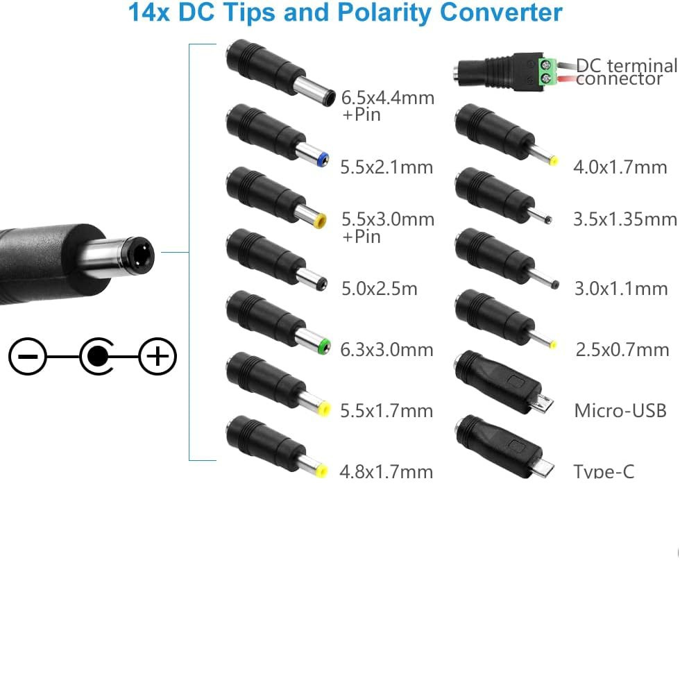 Конвертируйте головку ноутбука 14 в одном комплекте плюс USB-кабель 5.5*2.1 Многофункциональный блок преобразования источника питания