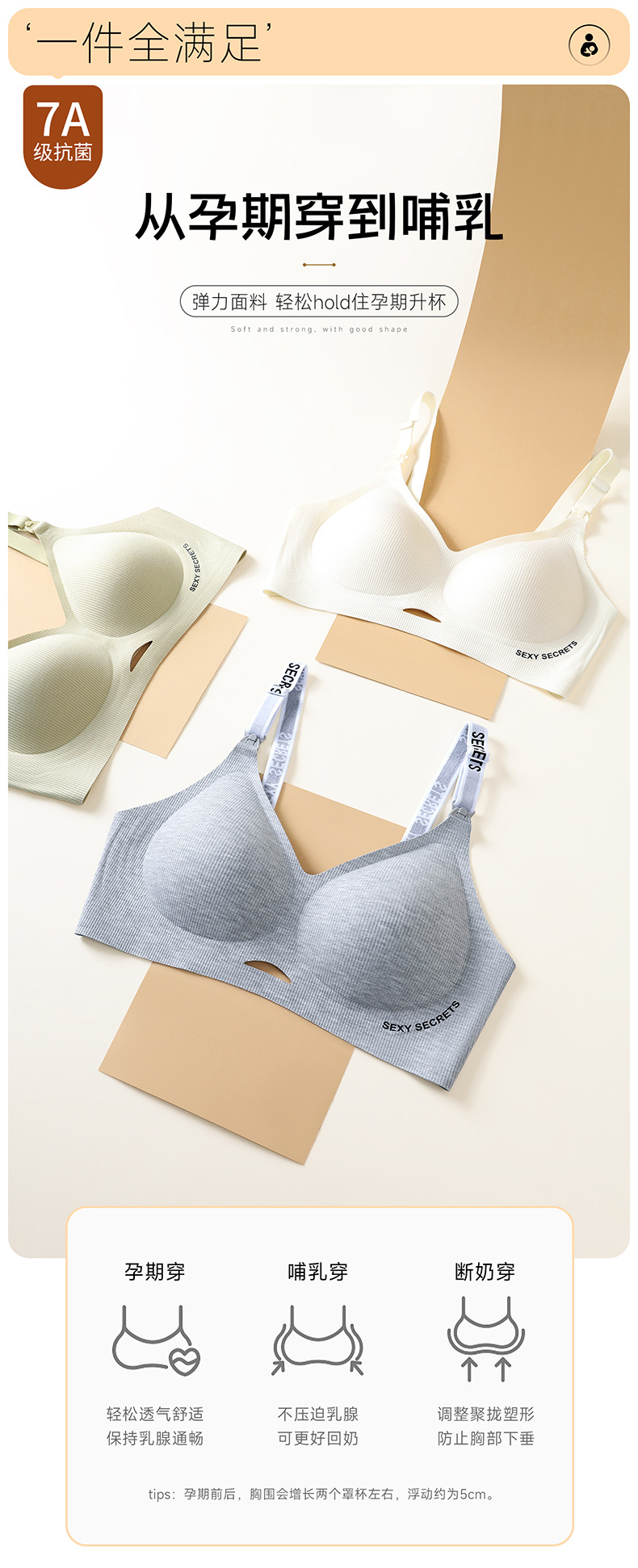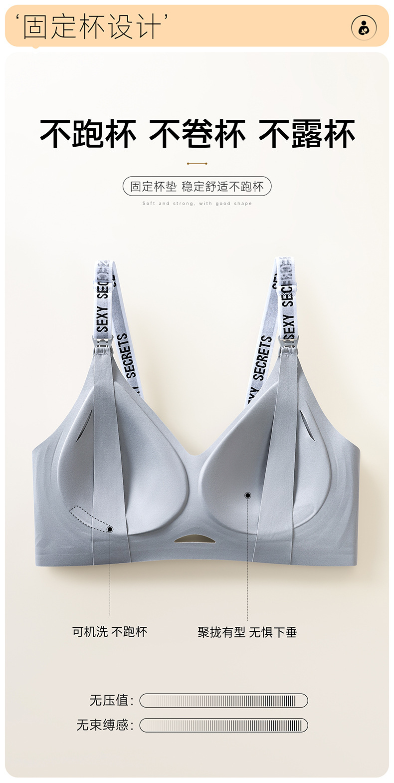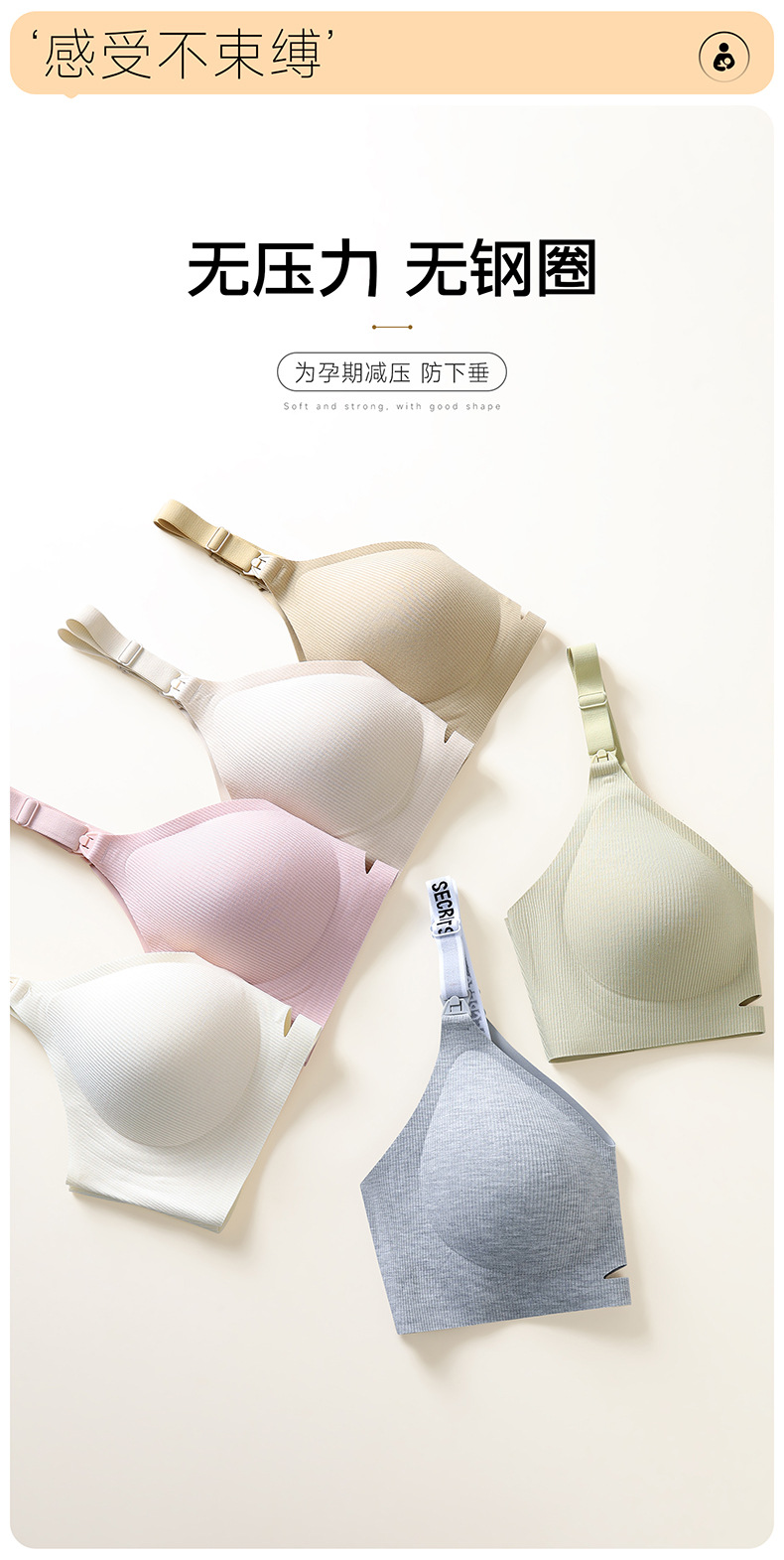 Без следов без стального кольца 7A Антибактериальный бюстгальтер для кормления во время беременности собрать полный стакан кормления бюстгальтер ребро для беременных