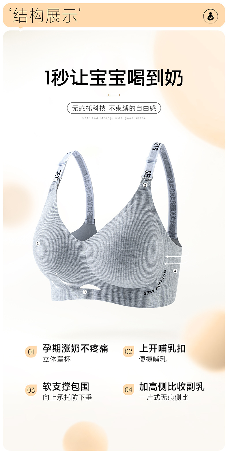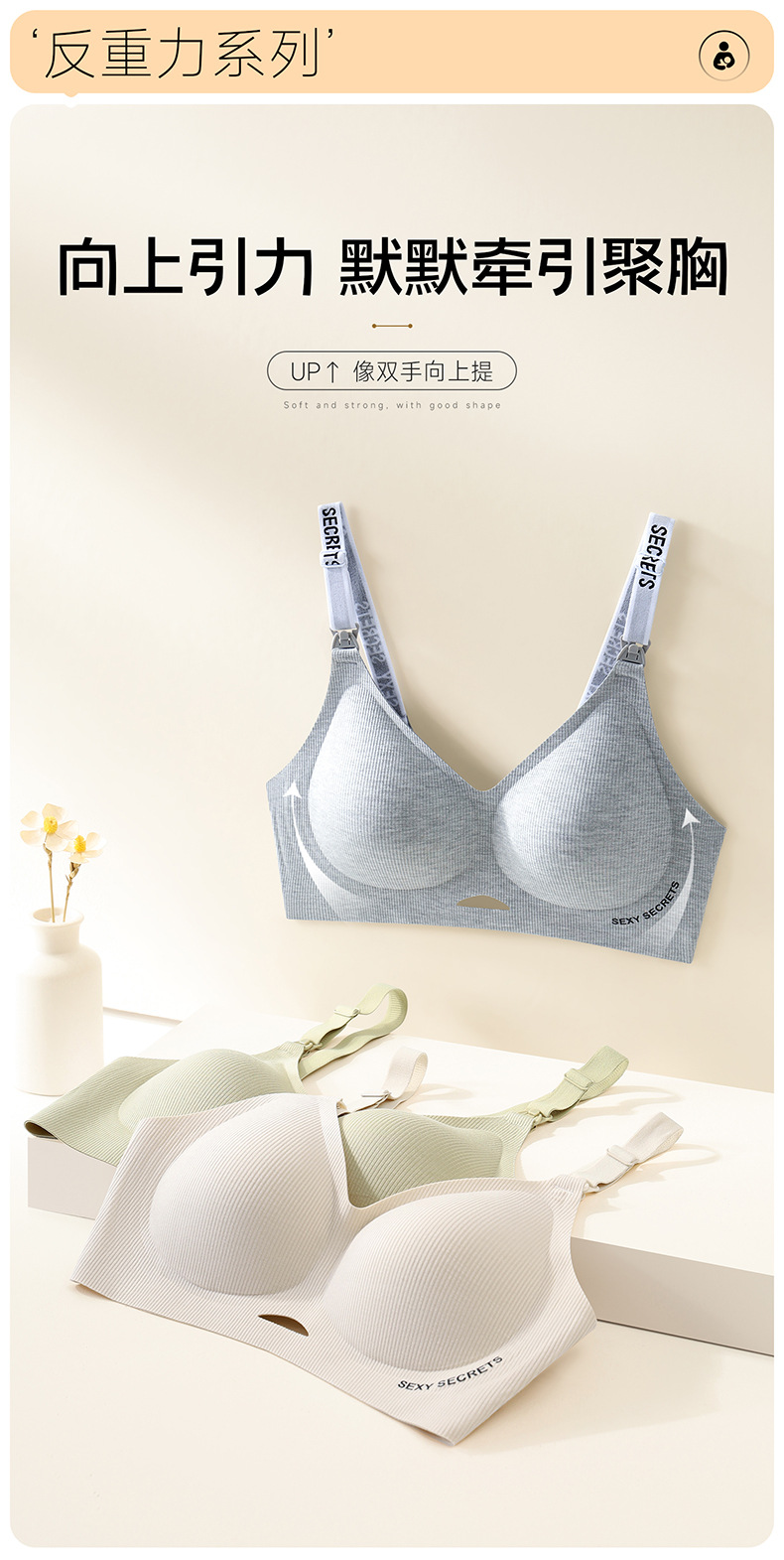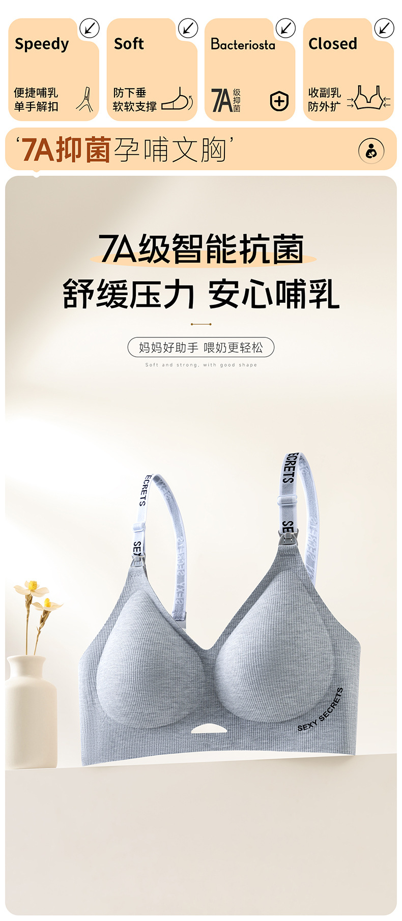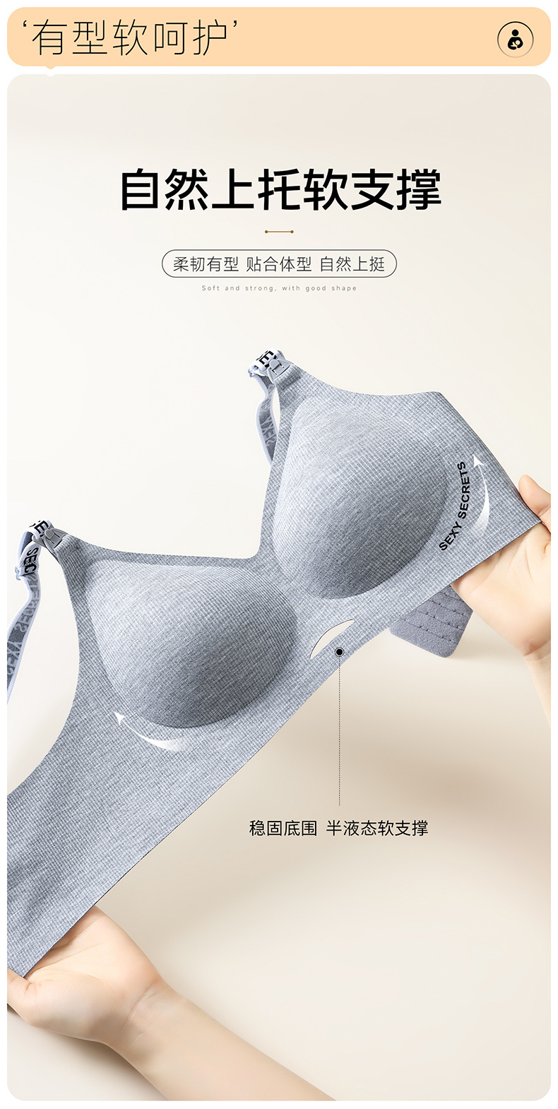 Без следов без стального кольца 7A Антибактериальный бюстгальтер для кормления во время беременности собрать полный стакан кормления бюстгальтер ребро для беременных