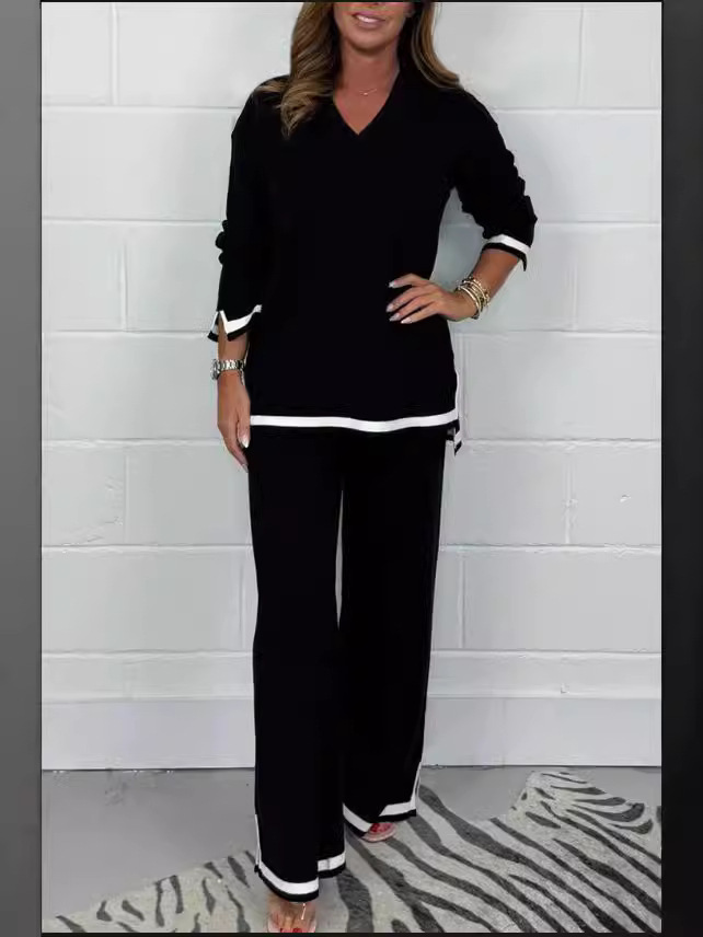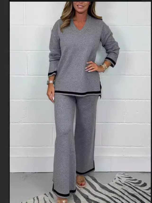 Трансграничная независимая станция Европейская и американская внешняя торговля новый _ осенний и зимний темперамент повседневный сплошной цвет трикотажные брюки с длинными рукавами